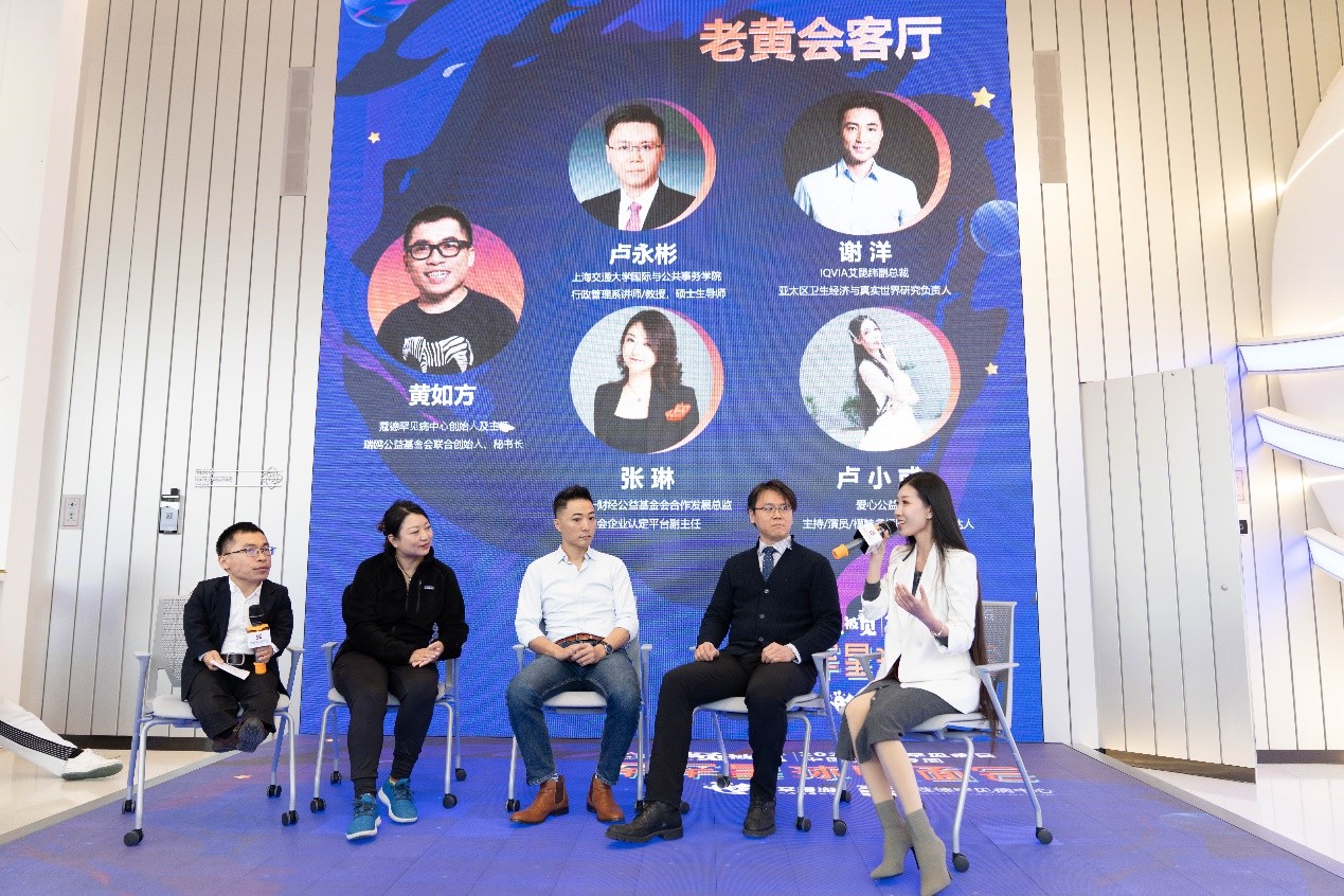 「老黄会客厅」由蔻德罕见病中心创始人/主任黄如方担任主持人,邀请了上海交通大学教授卢永彬先生、IQVIA艾昆纬副总裁谢洋博士、第一财经公益基金会张琳女士和公益达人KOL卢小彧女士担任嘉宾,围绕“如何联动社会各界支持罕见病群体”进行了讨论。