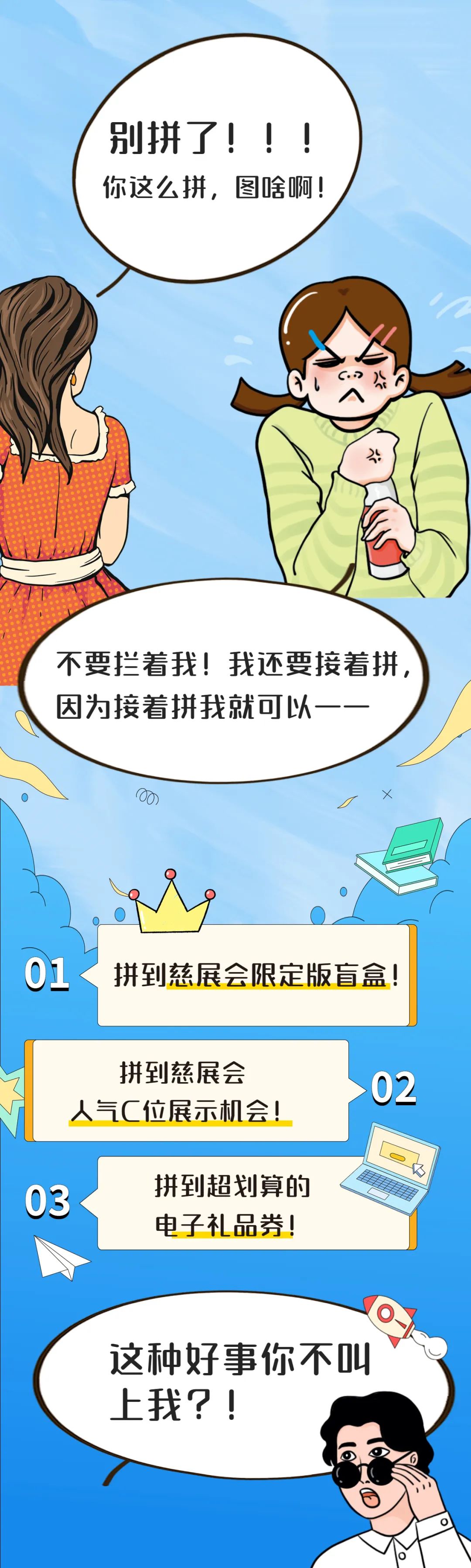 我们将在活动期间选出20个最佳创意作品,入选作品的创作者将获得慈展会周边盲盒+30元京东E卡电子券,入选作品将有机会在中国慈展会公众号及展会现场展示。