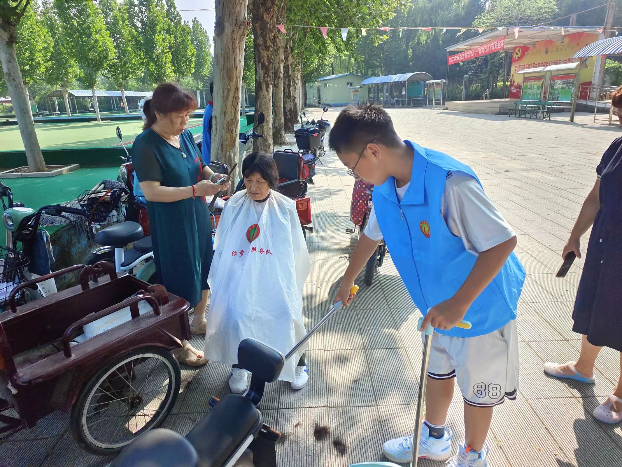 为弘扬敬老、爱老、助老的传统美德,更好地关爱老年人的生活,2023年8月16日,绿萝志愿者团队在房山东大桥附近开展助老理发志愿活动。