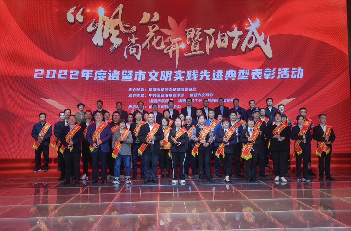2023年3月10日下午,由市精神文明建设委员会主办,市委宣传部、市文明办、市总工会、共青团诸暨市委承办,市融媒体中心协办的“枫”尚花开暨阳城——2022年度诸暨市文明实践先进典型表彰活动在市融媒体中心演播大厅举行,绍兴市委常委、诸暨市委书记沈志江,市人大常委会主任郭浩良,市政协主席孟国锋,市委常委、宣传部部长王孔羽,副市长高嵩出席活动为道德模范颁奖。