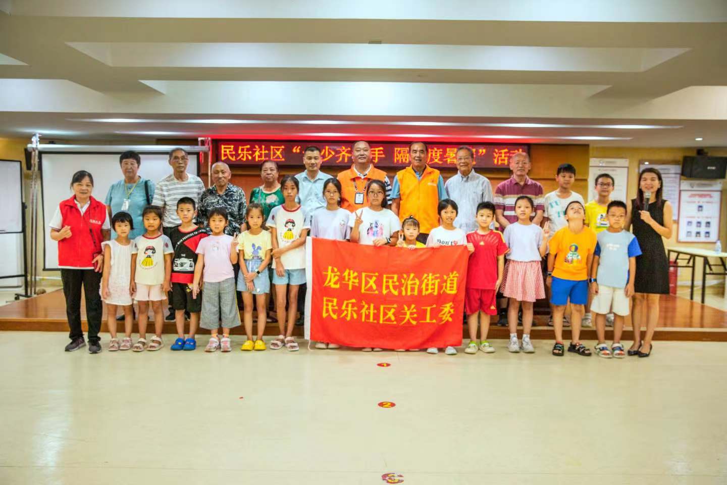 2023年8月23日,由深圳市龙华区民治街道关工委主办,民乐社区关工委和春华秋实隔代教育促进会承办的“老少齐携手 隔代度暑假”活动在民乐社区党群服务中心举行,民乐社区关工委主任孙旗开、副主任常满彥、关工委“五老”书法家吴永福老师、“五老”书画家陈建恩老师,民乐村党支部党员、“五老”肖虎生老师和冼继民老师等领导嘉宾及辖区多名孩子和家长参加了本次活动。
