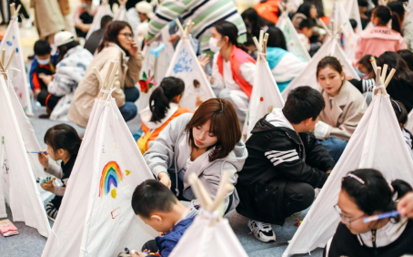 以艺术力量助力长江生态保护,是本次世界水日的核心。科普结束后,小朋友们纷纷进入帐篷涂鸦区,与来着重庆工商大学艺术学院党员服务站的志愿者哥哥、姐姐进行一对一结对,共同创作一顶帐篷。