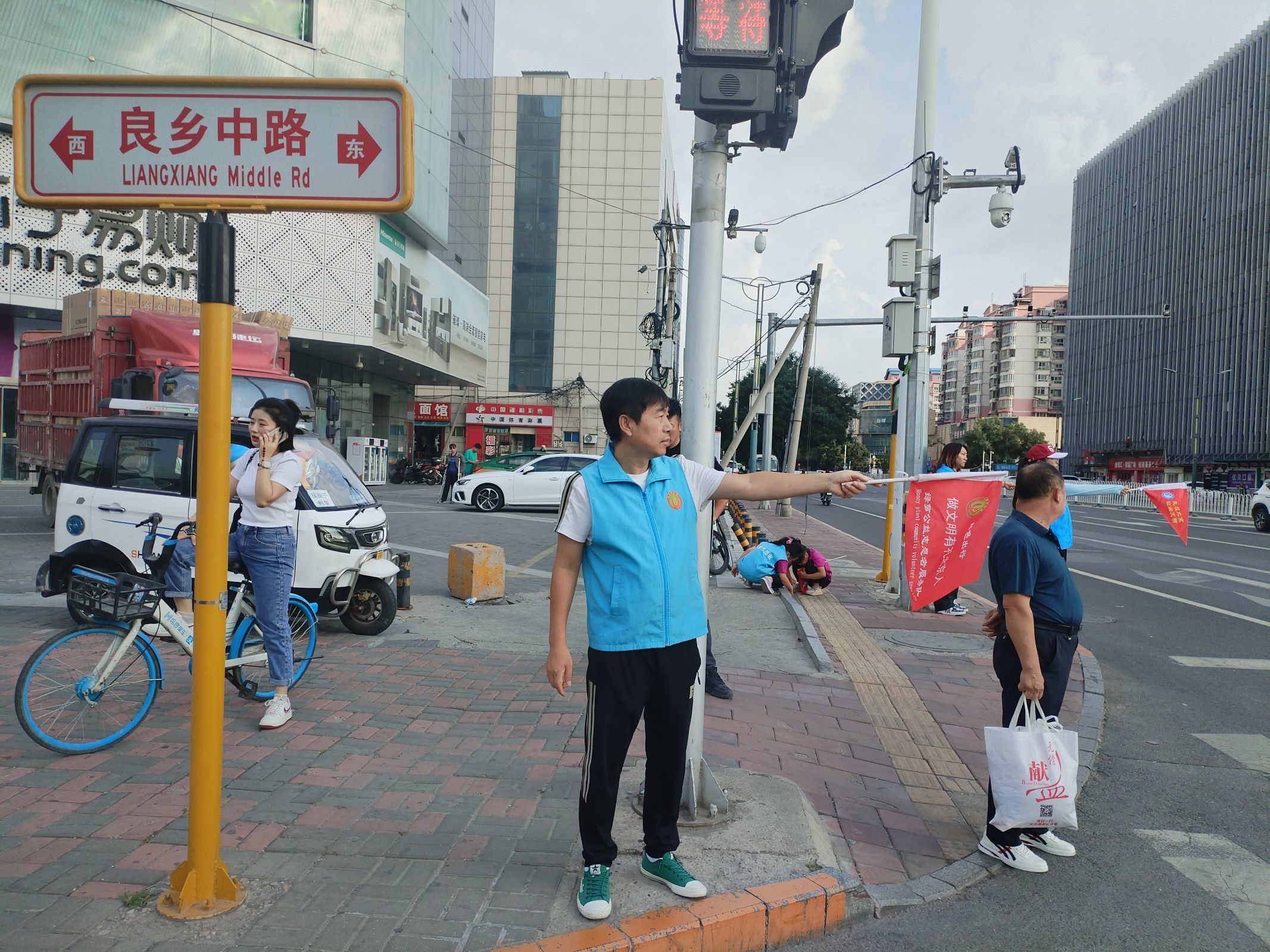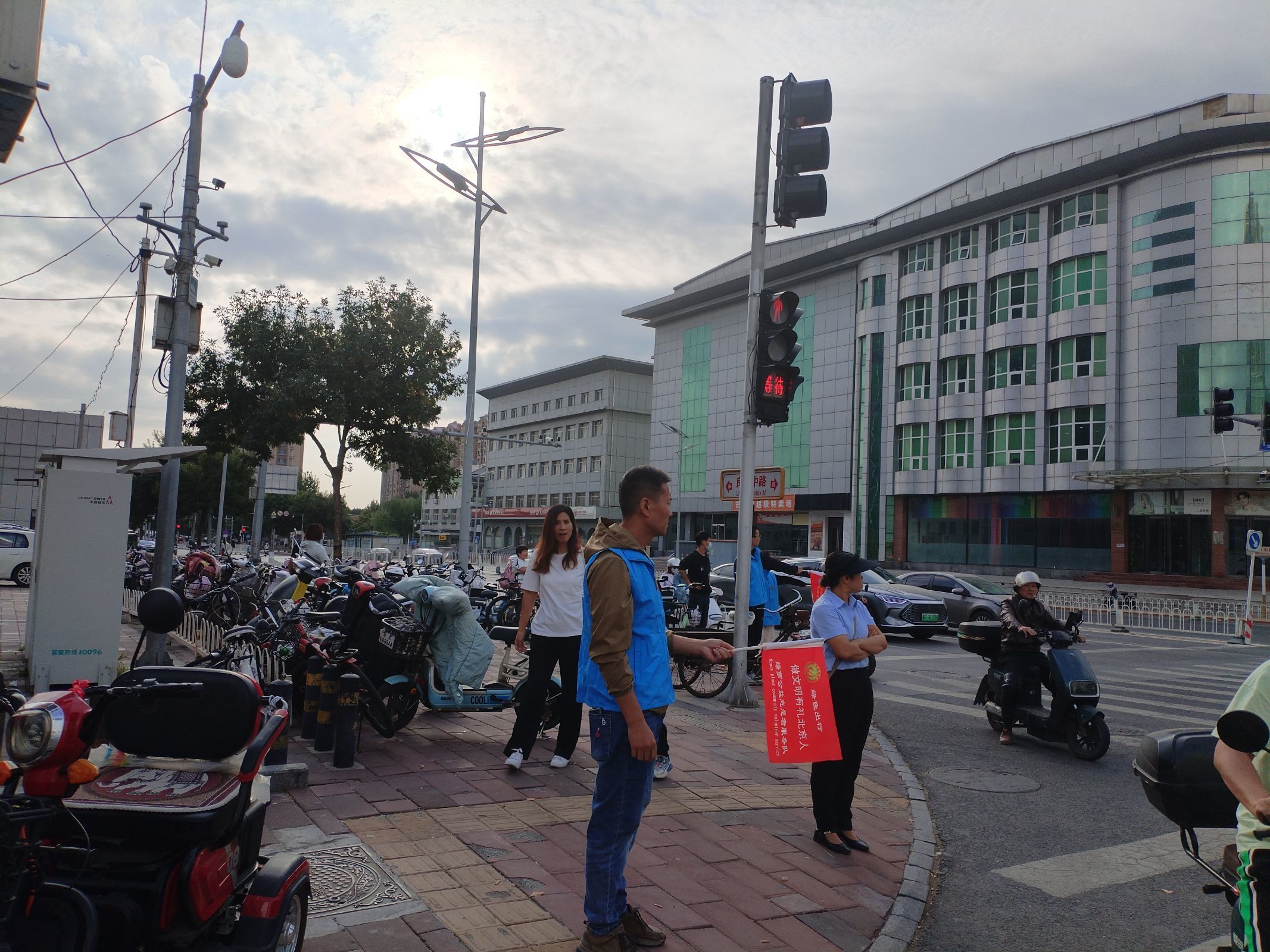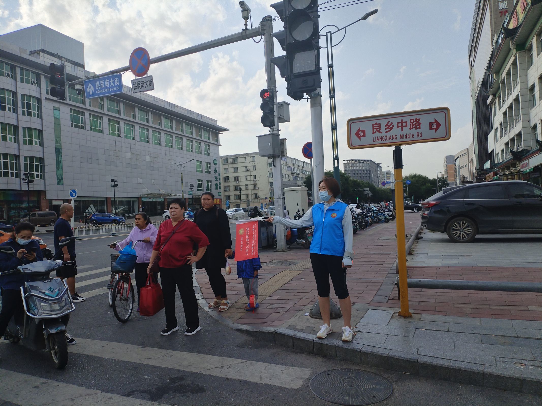 深化文明礼仪行动,推动文明交通出行,构建畅通有序的交通环境。 2023年9月23日上午,绿萝志愿者在良乡大角路口开展“礼让斑马线,做文明北京人” 主题志愿活动。