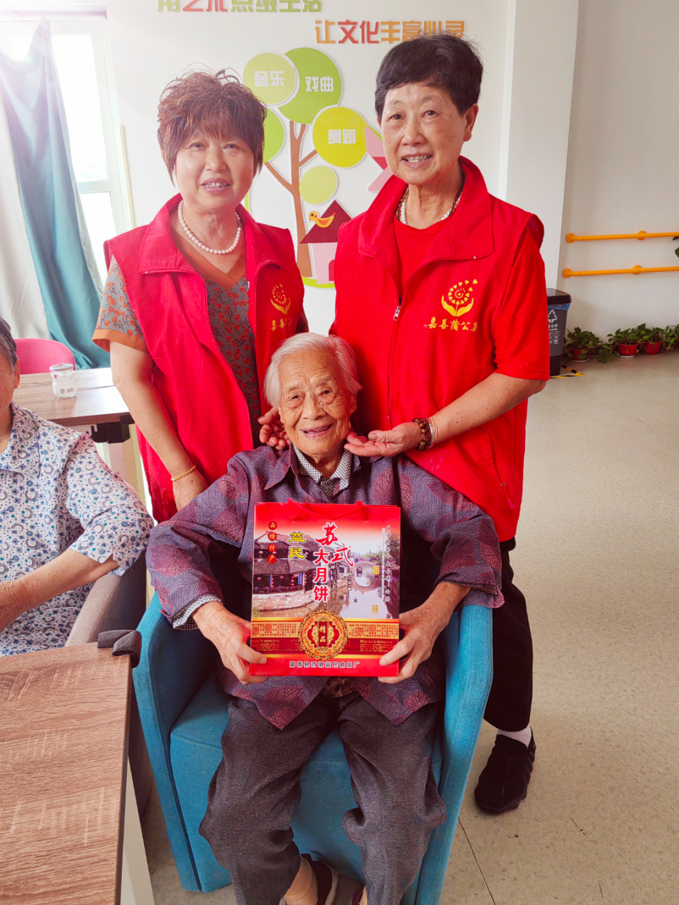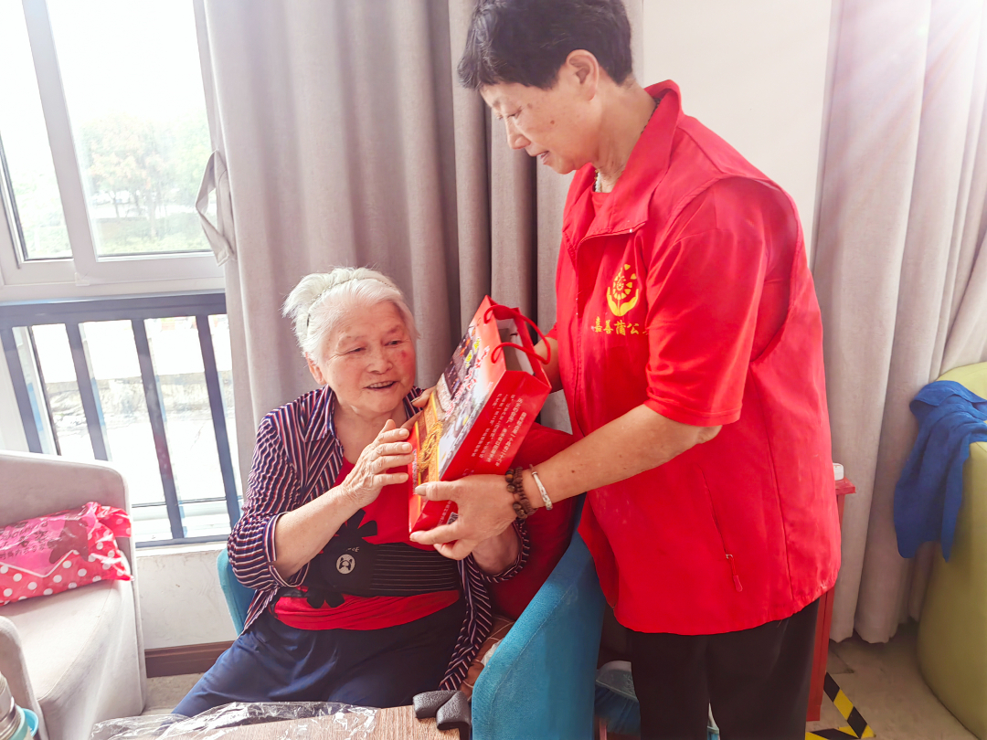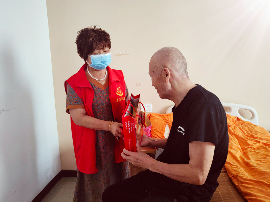 活动的最后,志愿者们给每位残友和行动不便老人送上一份精心准备的礼物,寓意着祝福和关怀。残友们和老人们感激地收下礼物,表达了对志愿者们的感激之情。同时祝福着彼此的幸福和健康。