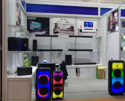 瀚宏音响作为首批参展企业,携旗下产品杜比家庭影院音响、电视回音壁、Party音响、蓝牙音响、多媒体音响等多个品类参展。其中杜比家庭影院音响中的天空系列产品,它是一款及观影、K歌、听歌为一体的多功能音响,带给你视听上盛宴享受。目前该款产品也是瀚宏音响进军内地市场的一块敲门砖。该款产品在内地平台上线以来,凭借着精美的设计、高质量的品质、高性价比收获了一致好评。