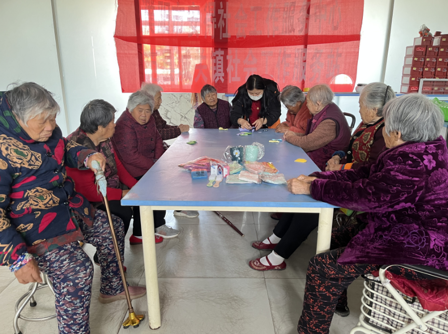 本节活动共计10位老人参与其中,此次活动的成功举办不仅更进一步的增进了社工与老人们之间的感情,一份份小小的礼品更是社工对老人们最美好的祝愿。