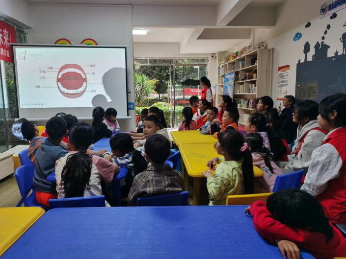活动中通过视频和图片等形式向未成年儿童讲述了牙齿的结构、作用,并示范了正确刷牙的方法,让大家更好地了解各类牙齿疾病发生的原因、症状、预防手段以及如何保护牙齿,并让他们相互宣讲这些爱牙护牙小知识。