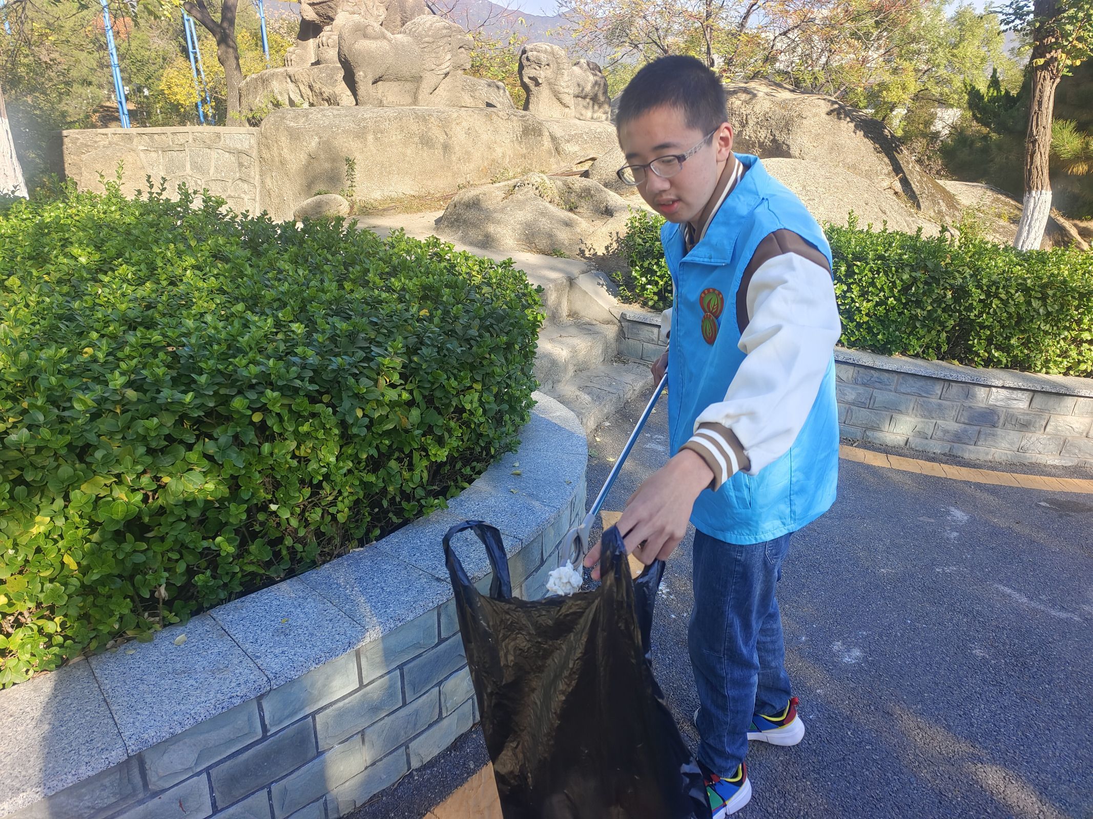 为了进一步提高广大市民文明出行的环保意识,2023年10月22日,绿萝志愿服务队,燕山分队的志愿者们在燕山公园开展了“文明出行,户外清洁活动。”