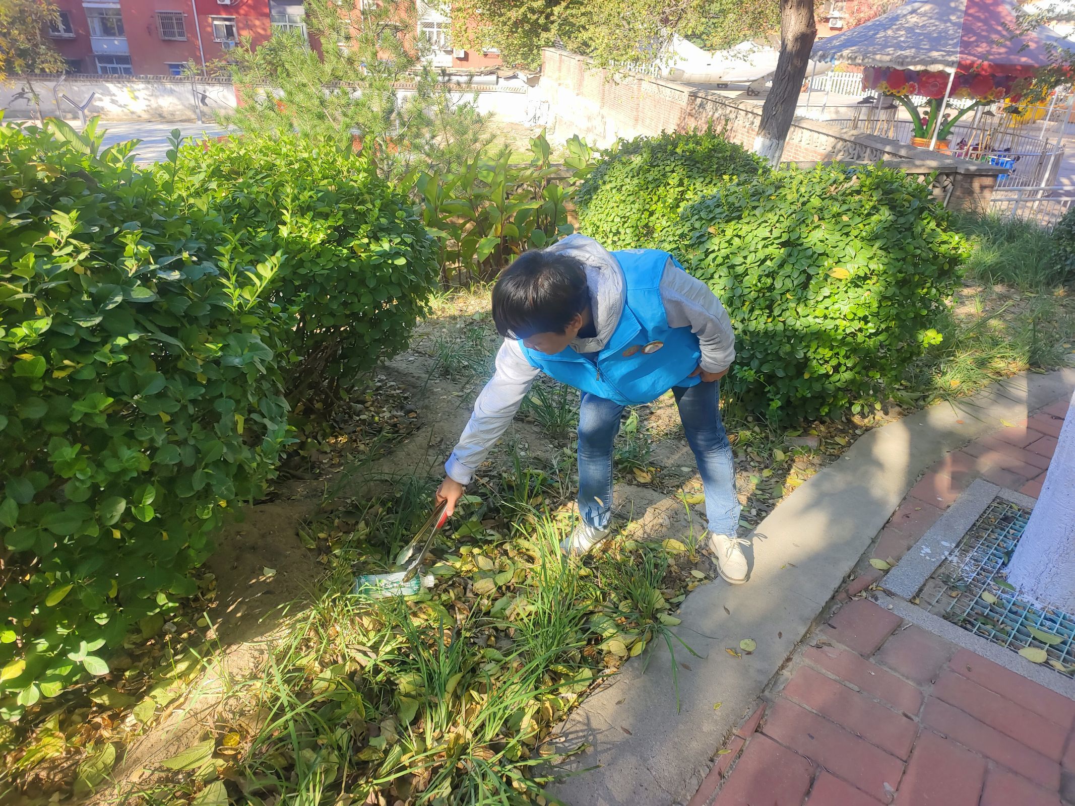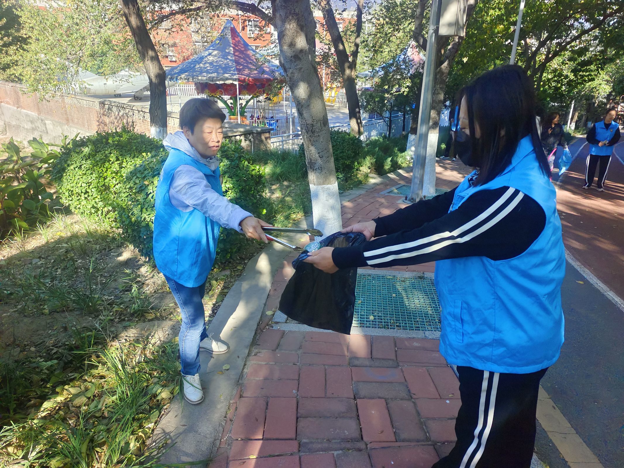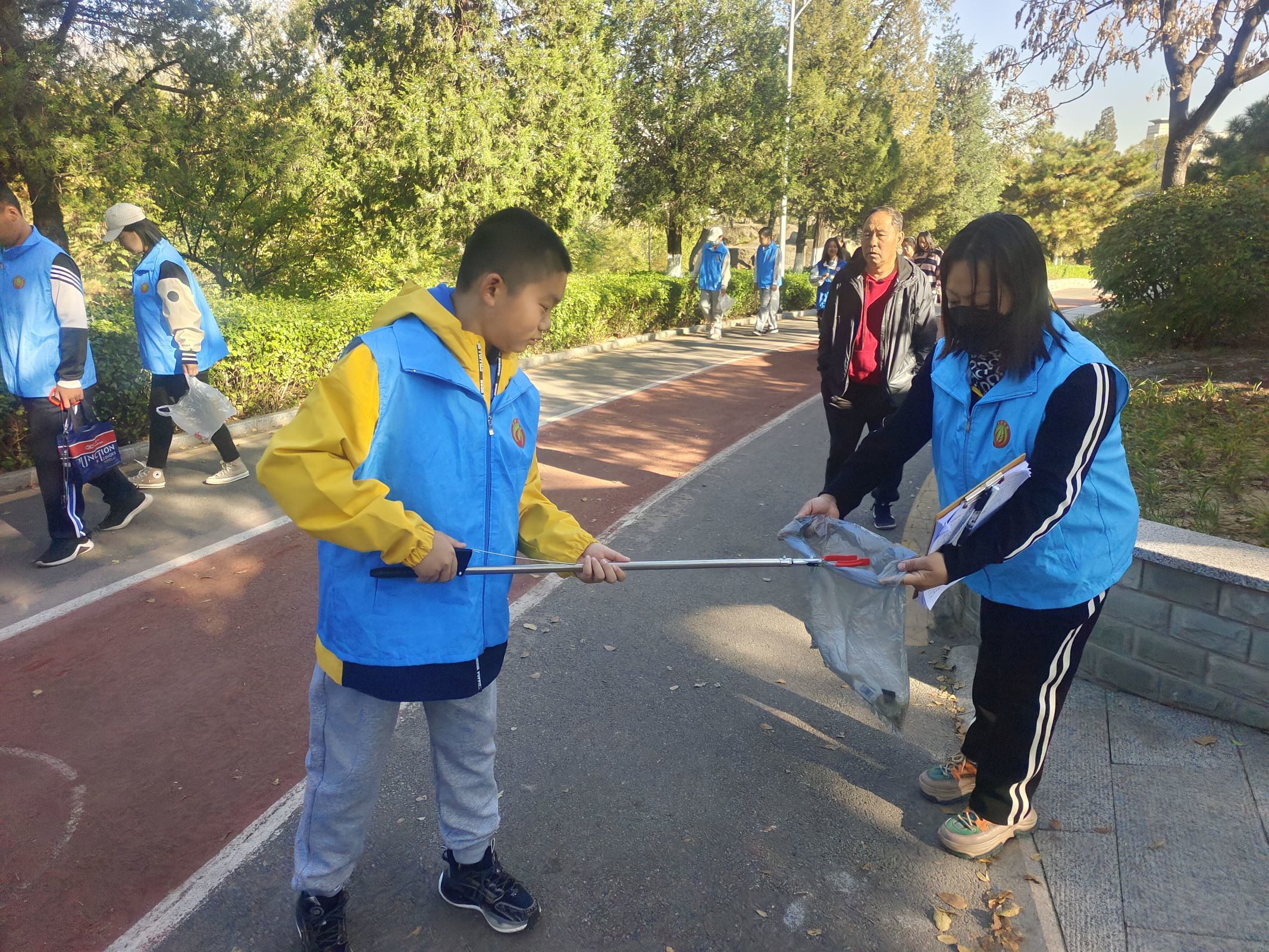 活动中志愿者们,身穿着蓝色马甲,迈着轻盈的步伐,手提垃圾袋,夹子等工具,分组沿着公园道路两旁,捡拾着白色垃圾,烟头、纸屑、饮料瓶以及废弃物。经过志愿者的共同努力,公园终于焕然一新。队伍中有不少志愿者都带着孩子一起参加活动,他们表示,美好生态环境来之不易,希望通过言传身教,让孩子在志愿活动中学习环保知识,学会保护身边环境。