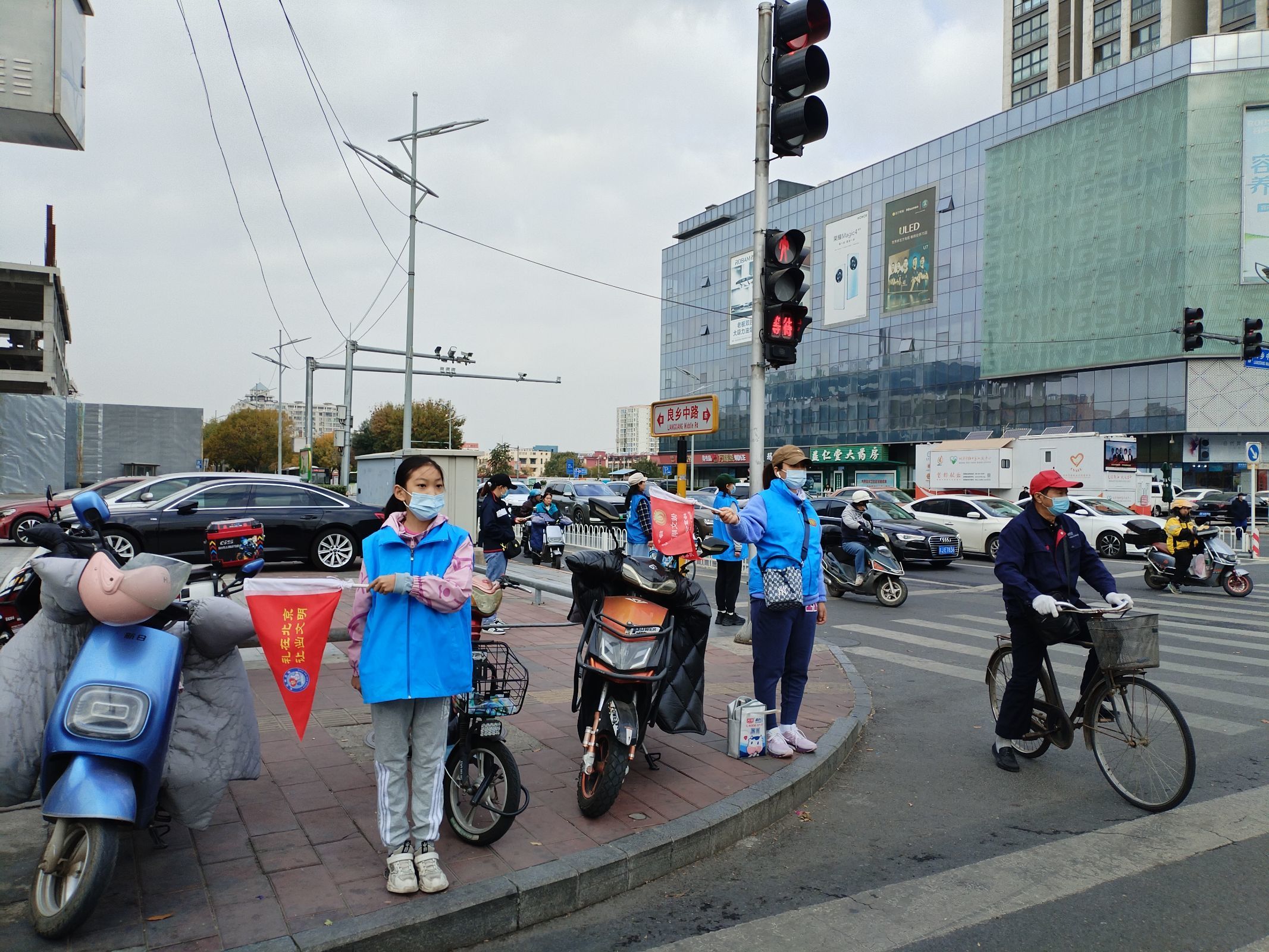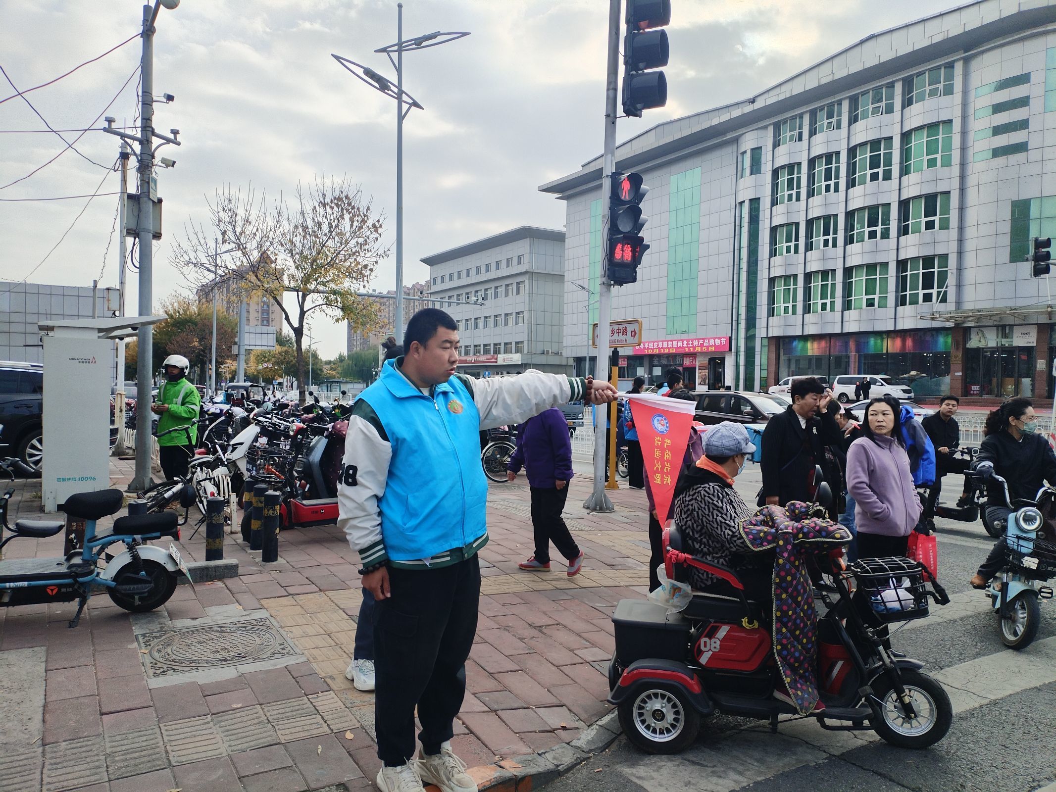 秋风瑟瑟,志愿者们站姿挺拔的矗立在斑马线前,手持指挥旗,整齐划一的指挥动作,引导过往车辆礼让行人,积极营造安全畅通、和谐有序的文明交通环境。 志愿者们认真对超越斑马线的路人进行规范,对不遵守秩序的行人进行劝阻。对遵守交通规则的行人投去灿烂的微笑。