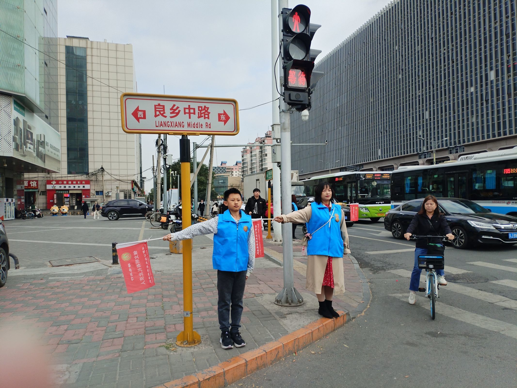 为大力倡导城市文明礼让风尚,营造文明和谐的交通环境,提升行人“礼让斑马线”的文明交通意识,创造良好的道路交通环境,2023年11月4日,绿萝志愿者在良乡大角路口开展“礼让斑马线,文明伴我行” 主题志愿活动。