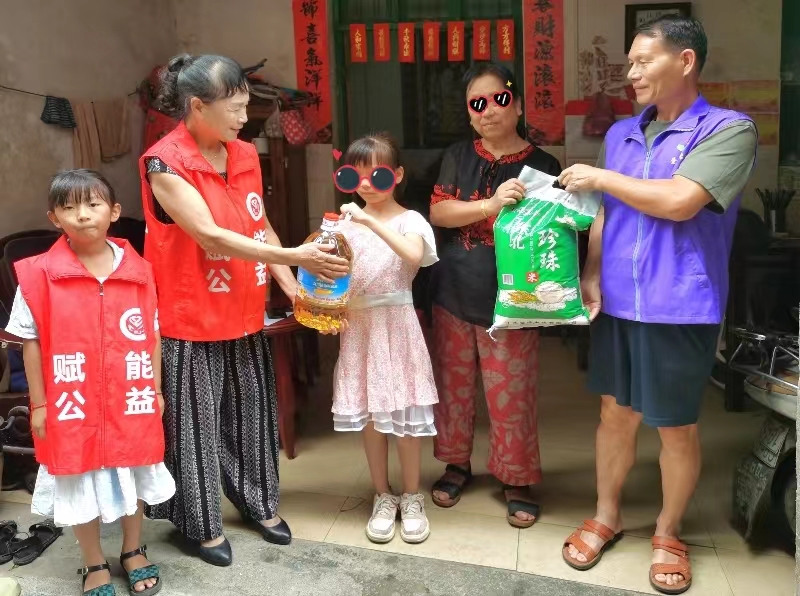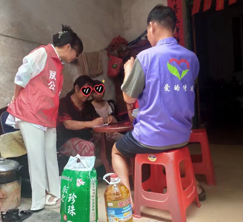 2023年10月4日,瑞金赋能公益胡俭、曾小艳、刘振平等志愿者前往解放路社区小雯家开展助学送温暖活动,送去生活物资,送去关怀,传递社会温暖。