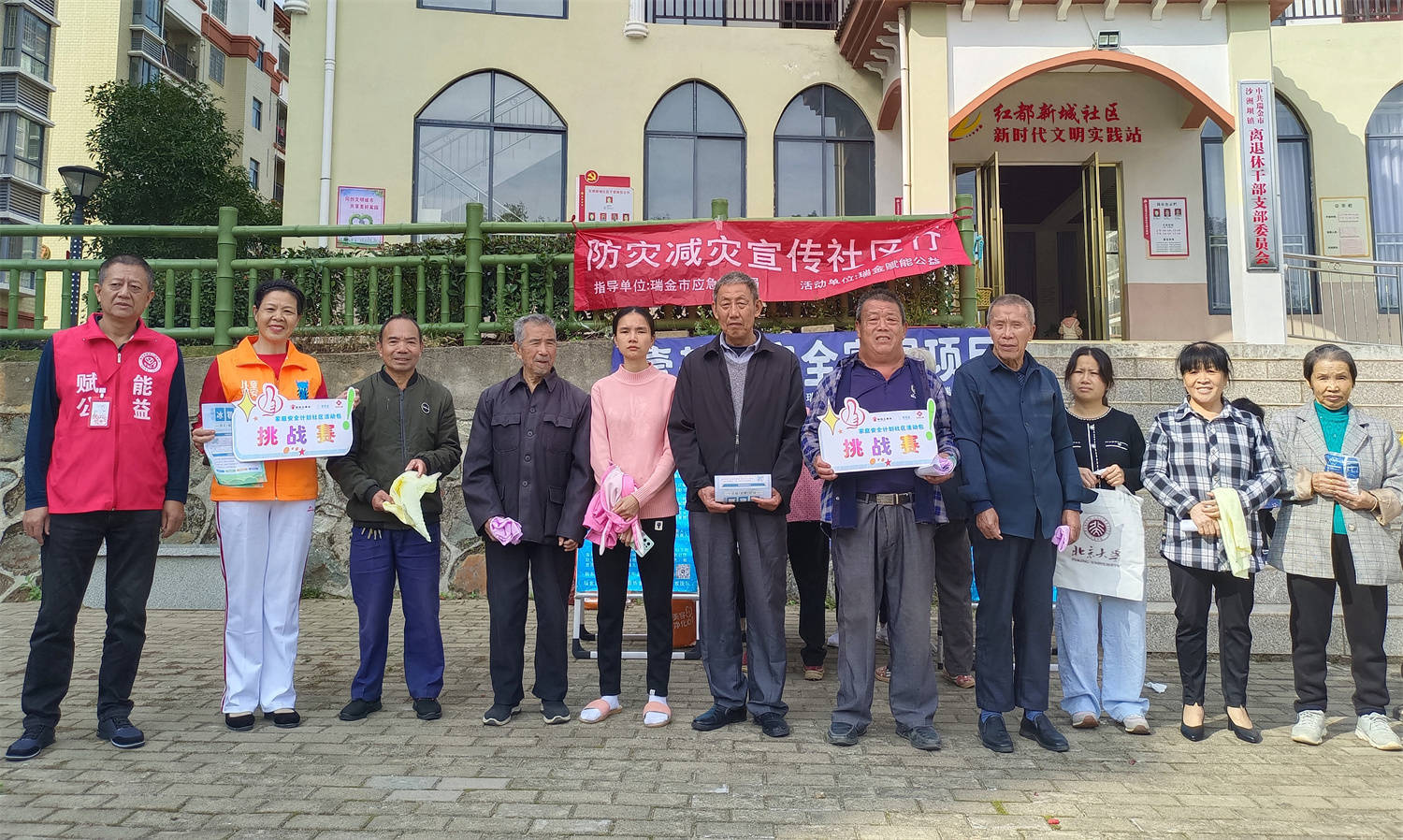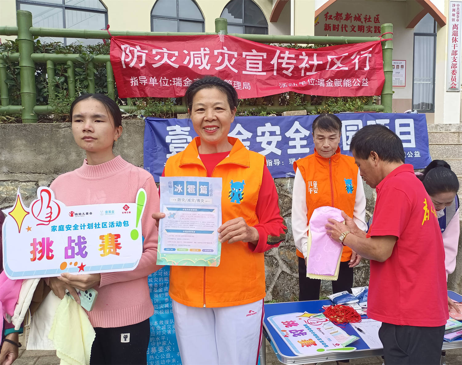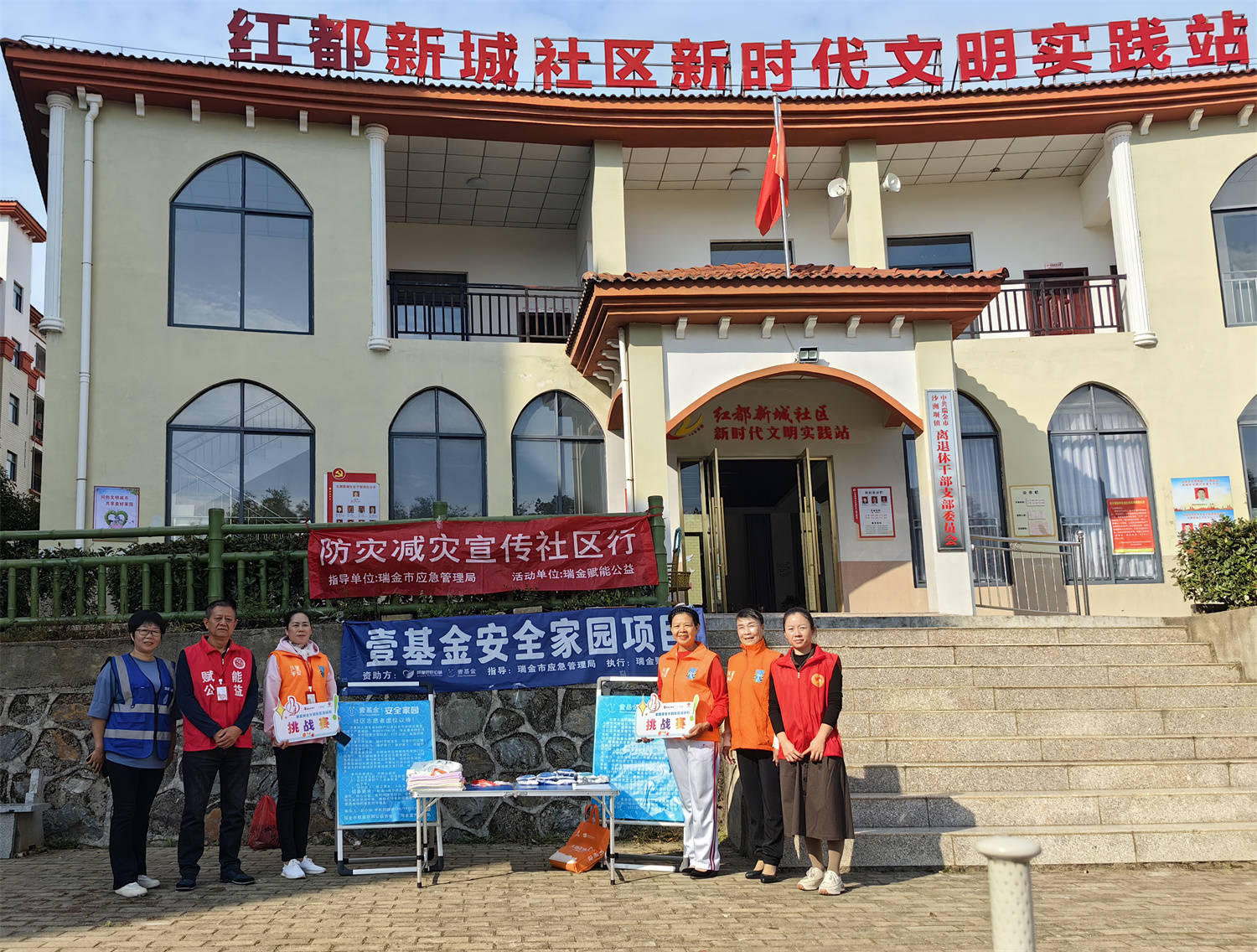 11月7日,瑞金市赋能济困公益协会、蓝天救援队等联合沙洲坝镇红都新城社区一起走进梦想家园小区,开展家庭安全计划社区活动包挑战赛活动暨壹基金安全家园项目防灾减灾宣传社区行活动。