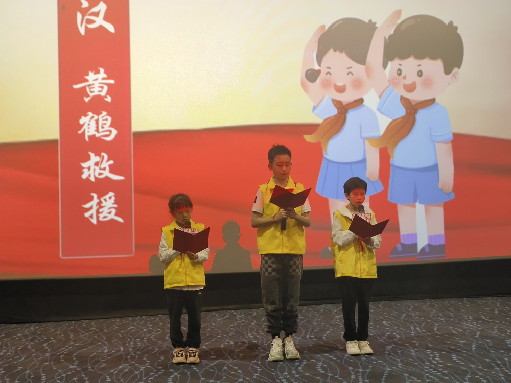 和平时看电影不同的是,影片开始前的半小时,增加了一场小小的活动。首先,公益小天使芦泳皓、黄贝伶和杨敬一朗诵了黄鹤救援队朱艳萍的原创散文《黄鹤救援 一直在路上》。