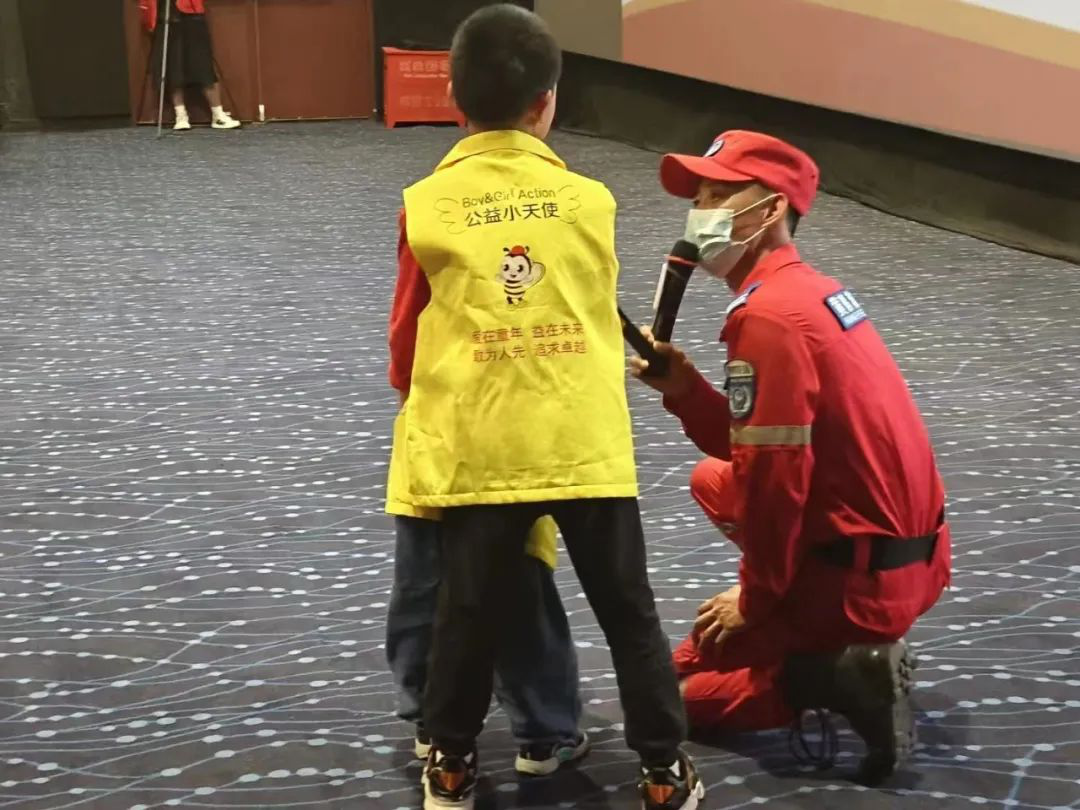 公益小天使稚嫩但坚定的声音,向世界传递着黄鹤救援执着于应急救援的信念。接着,10名公益小天使向黄鹤救援队胡章学、熊建国等10位队员代表献上了红领巾,公益小天使用他们心中最为神圣的红领巾表达着对救援队队员的崇敬!
