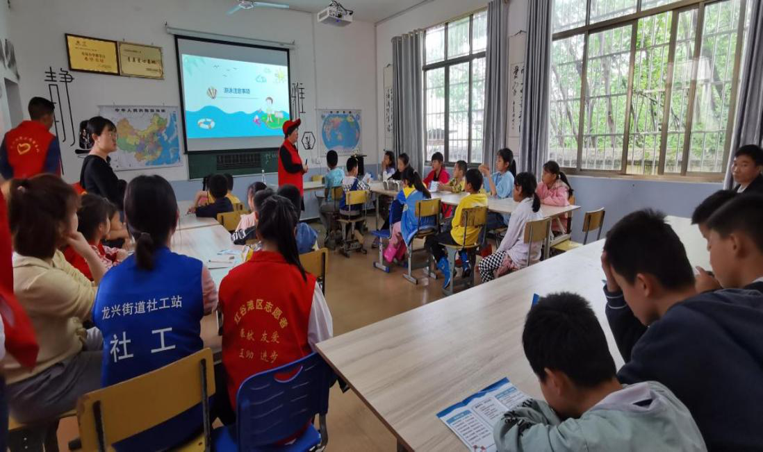 炎炎夏日已来临,学生溺水事故进入易发、多发期。为进一步加强校园安全教育,保证学生生命安全,帮助广大学生增强防溺水安全意识,掌握防溺水知识技能,提高自救互救能力。龙兴街道社工站联合街道公共服务办、青岚村委干部于2023年5月6日下午在青岚小学开展“珍爱生命 远离溺水”主题宣传教育活动。