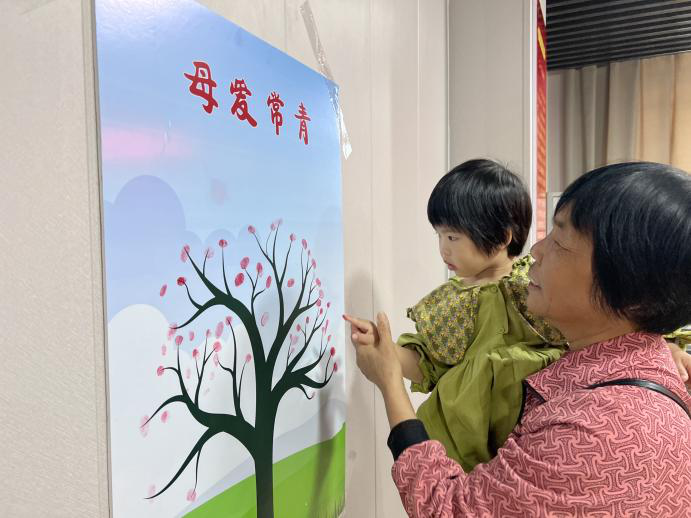 漫长成长岁月里,母亲付出了不计其数的爱意。活动现场,心海社工引导母子之间通力合作,在常青树上印下手指印,让它们形成一棵参天大树,寓意爱意常青。