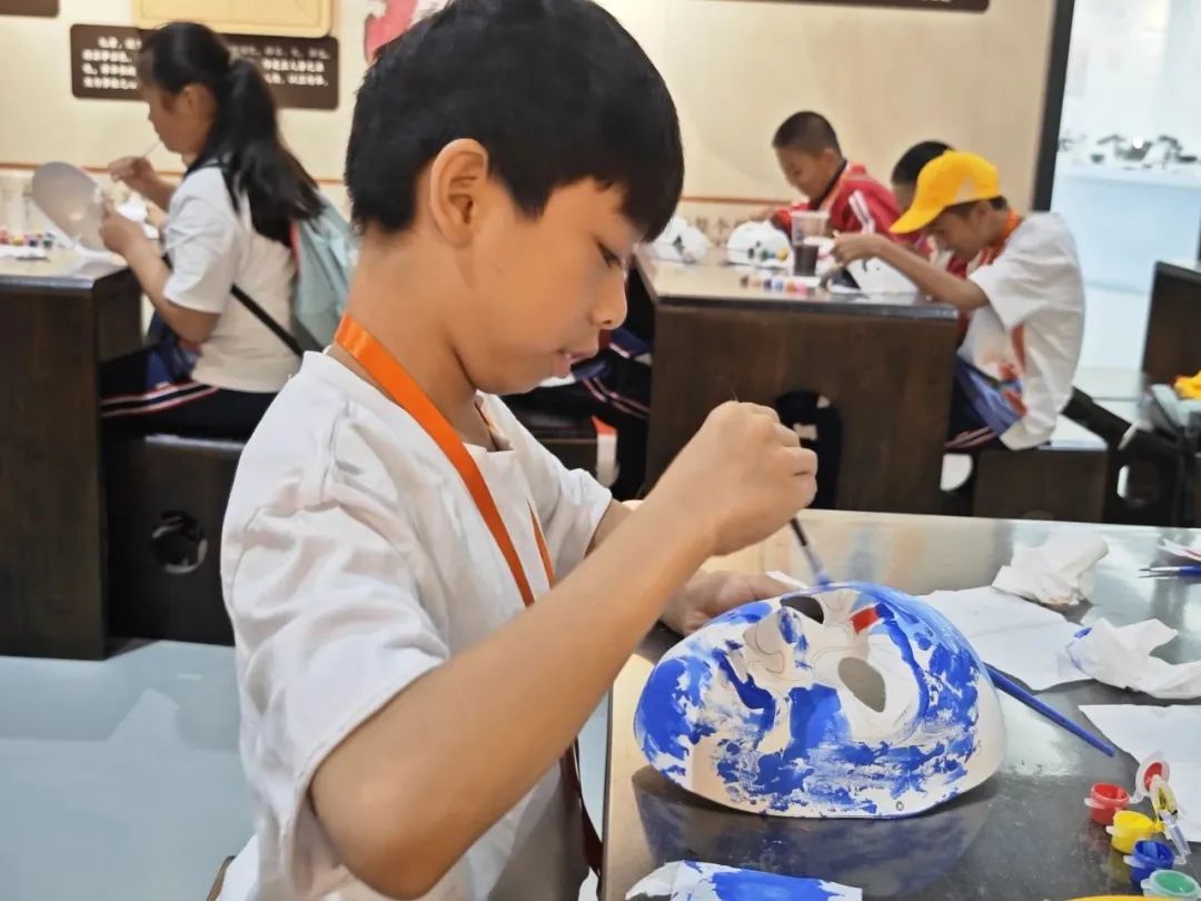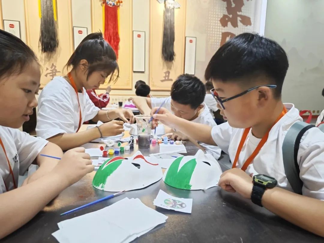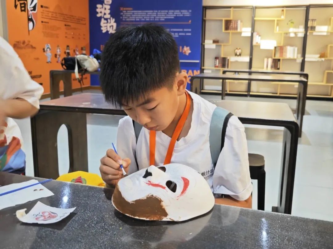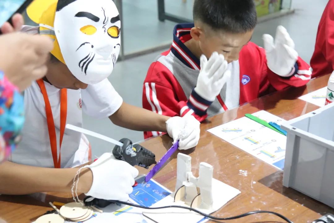 在第三天的第一站,游学营来到了圳少年创新教育基地。在这里,孩子了解到了京剧脸谱的知识,也参与了脸谱的实际绘制,通过感受人物性格特点和发挥想象,孩子们从中感受到了国粹的魅力。在现场,来自辽宁的钱思宇同学还为大家现场展示经典桥段的演唱,让大家对京剧有更充分的感知。与此同时,在老师的带领下同学们还了解到齿轮原理、并用马达齿轮等制作旋转小陀螺。当工具箱分发到同学们面前,大家很快便在老师的指导下三两协调配合,将积木和齿轮、马达组装在一起,看着作品在自己的手中顺利转动起来,大家在这期间感受无限快乐和成就感。