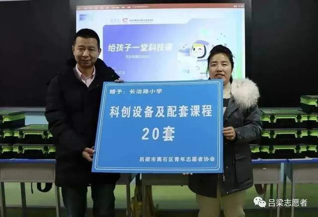 12月13日,吕梁市离石区青年志愿者协会承接落地的“给孩子一堂科技课”捐赠启动仪式在长治路小学举行,通过向长治路小学、马茂庄小学两所学校捐赠科创设备及配套课程,提升科技教师的教学水平及配套教学资源,帮助学生建立科技基础,助力教育公平。