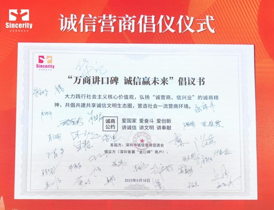 “弘扬‘诚营商、信兴业’的诚商精神,共倡共建共享诚信文明生态圈,营造社会一流营商环境。”活动上,商户代表也现场发起诚信营商倡议,共同营造深圳诚商营商环境。一字一句铿锵有力,振奋人心。
