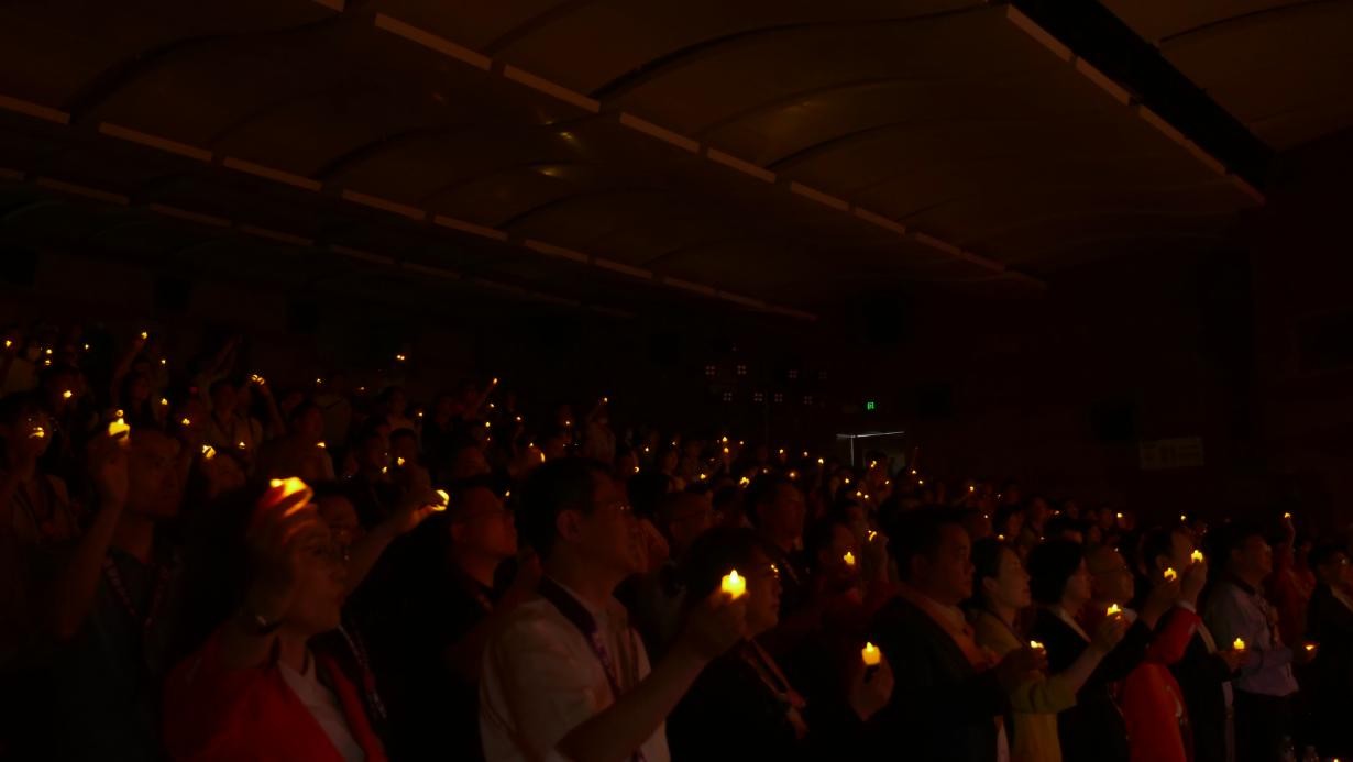 典礼现场参会嘉宾手持烛台,共同点亮诚信之灯,助力深圳诚信建设,星星点点的“诚信之光”照亮了整个会场。