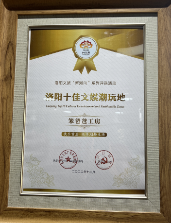 1月11日,笨爸爸工房荣获“洛阳市十大潮玩地”称号。