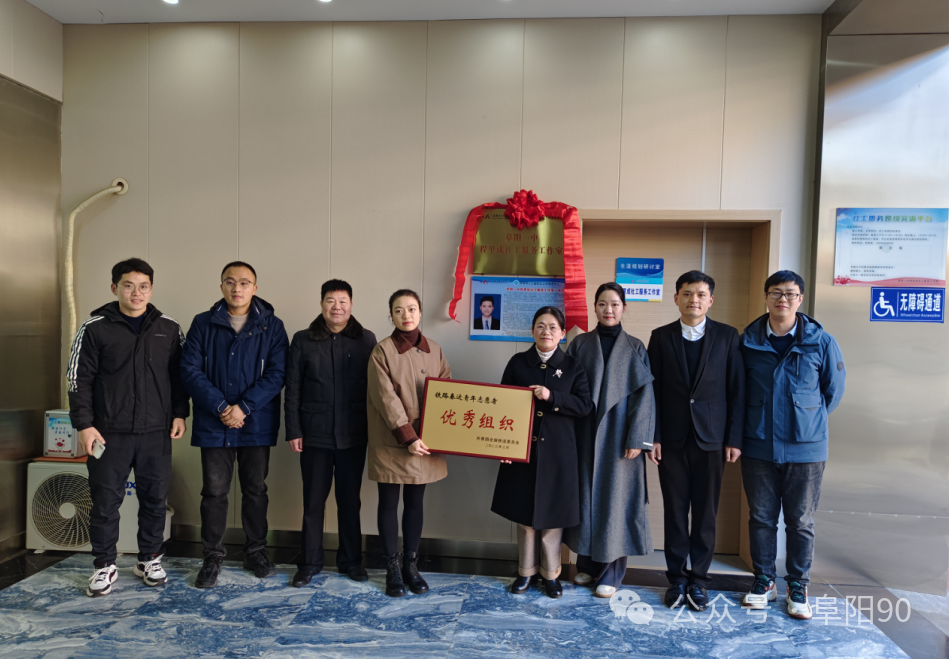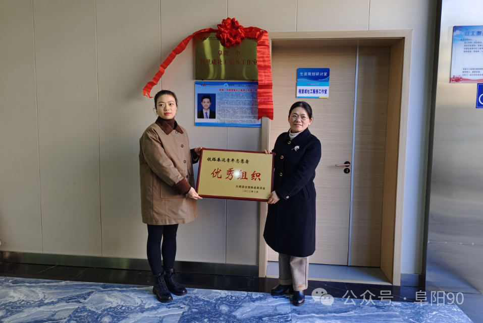 市文明办为“全国铁路团委铁路春运青年志愿者优秀组织”----阜阳一中程里成社工服务工作室志愿服务队颁奖。