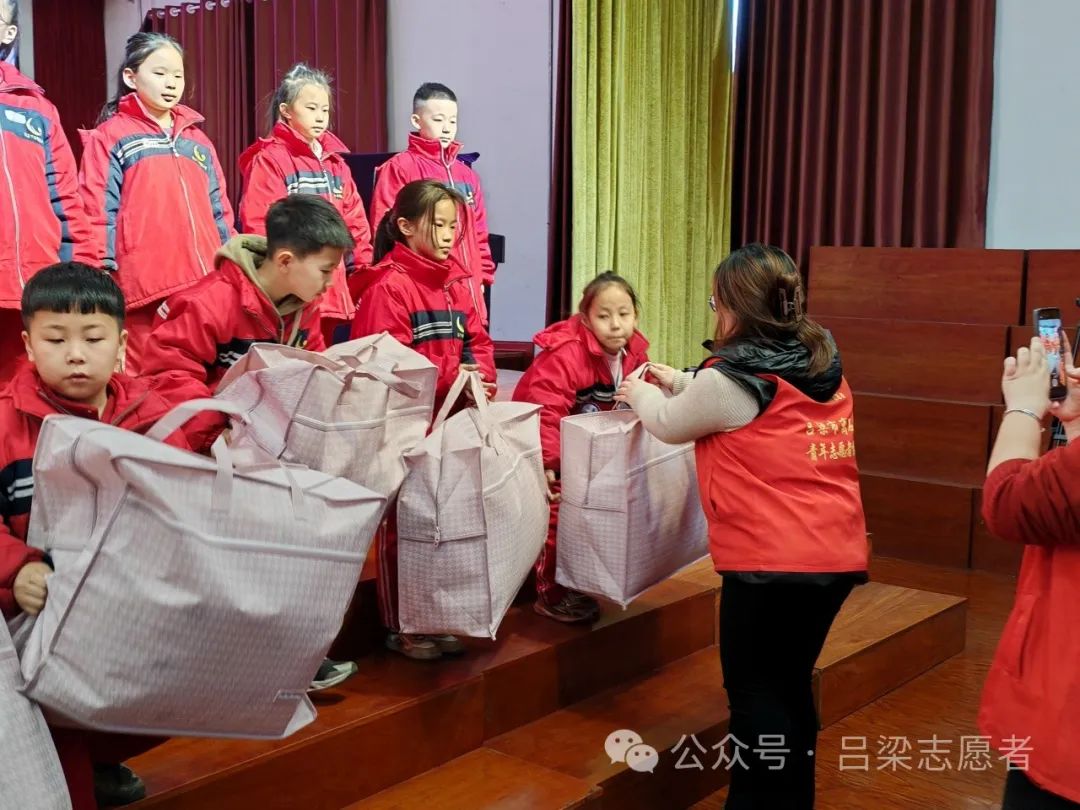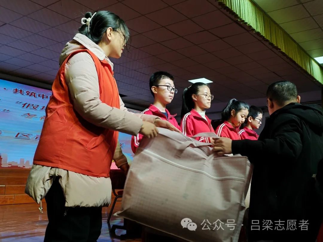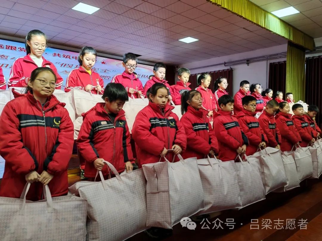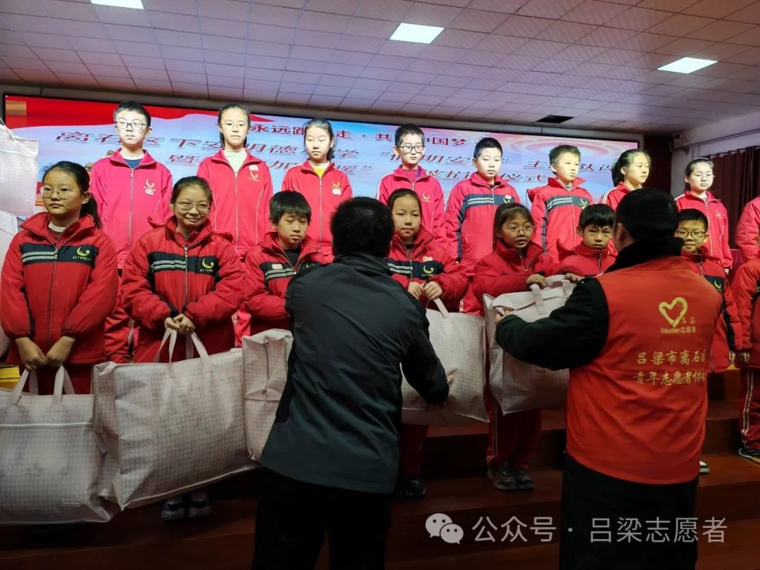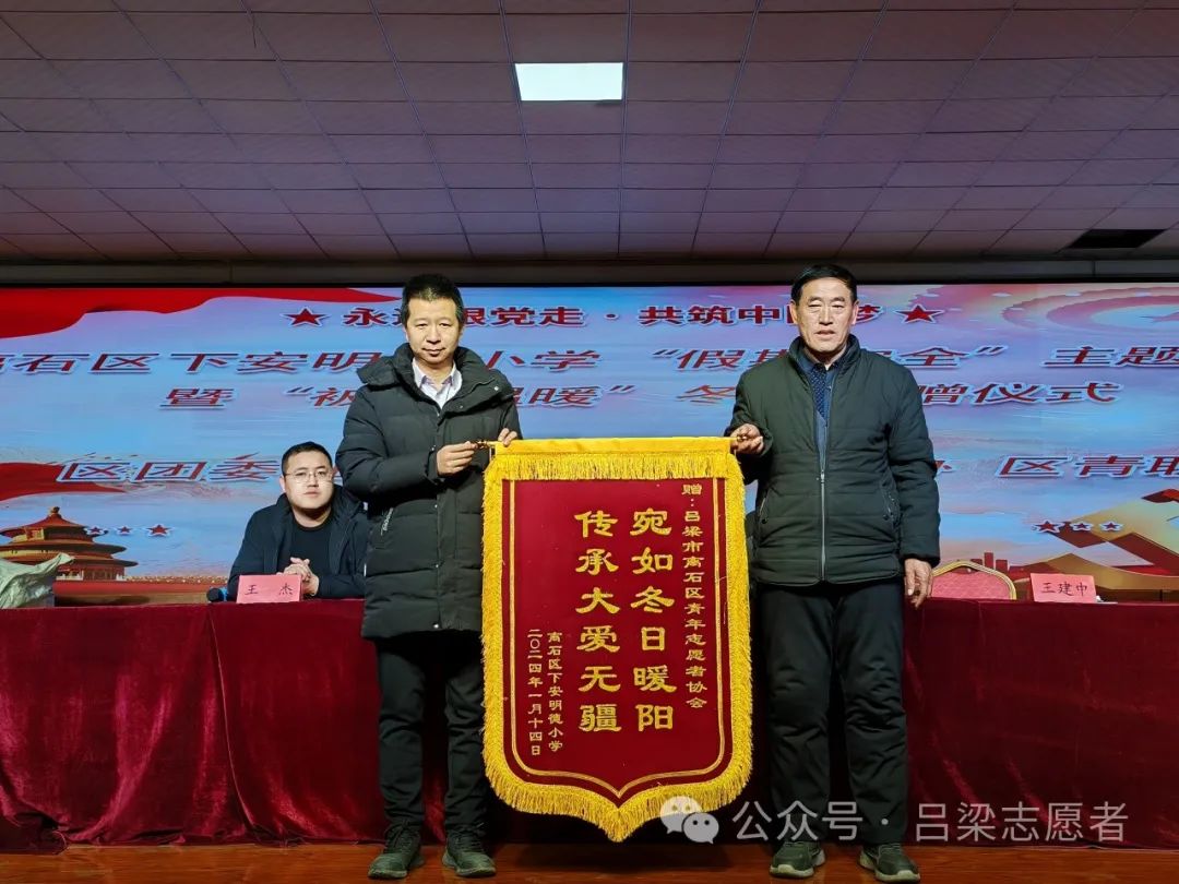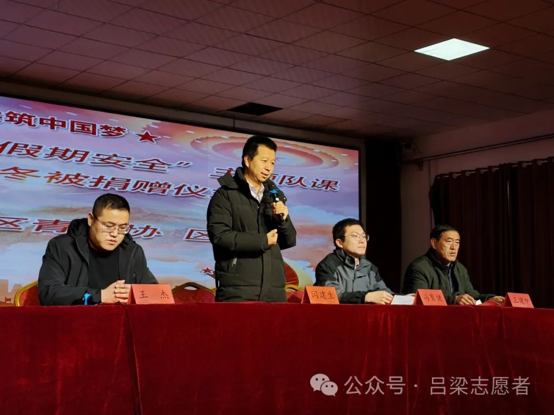 2023年1月14日,吕梁市离石区青年志愿者协会走进下安明德小学,开展“假期安全”主题队课暨“被加温暖”羽绒冬被捐赠活动。