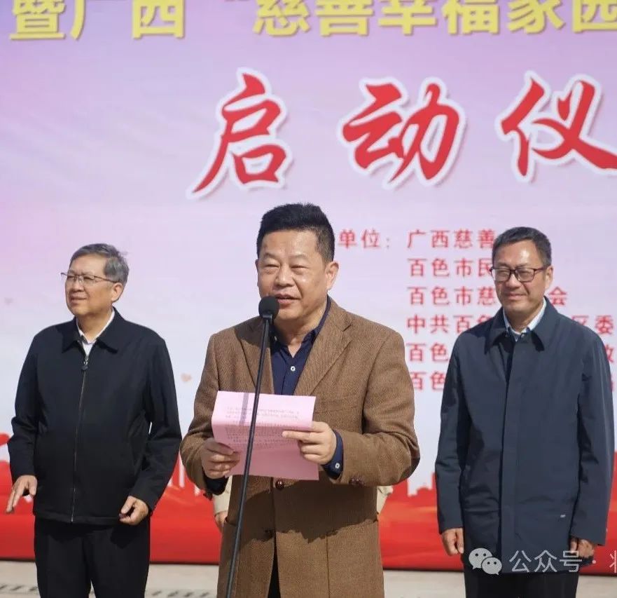 王晓在致辞中指出,广西慈善总会和百色市委市政府将“慈善幸福家园”试点设在田阳,是对田阳慈善事业的关注与支持,是对田阳民生事业的关心与帮助。我们将以此次启动仪式为起点,赓续“向善”精神,搭建“从善”平台,倡树“乐善”新风,努力将“幸福家园”打造成为扶弱济困、改善民生、助推乡村振兴和基层管理的重要平台,将田阳打造成为有情怀、有厚度、有温度的慈善之城。