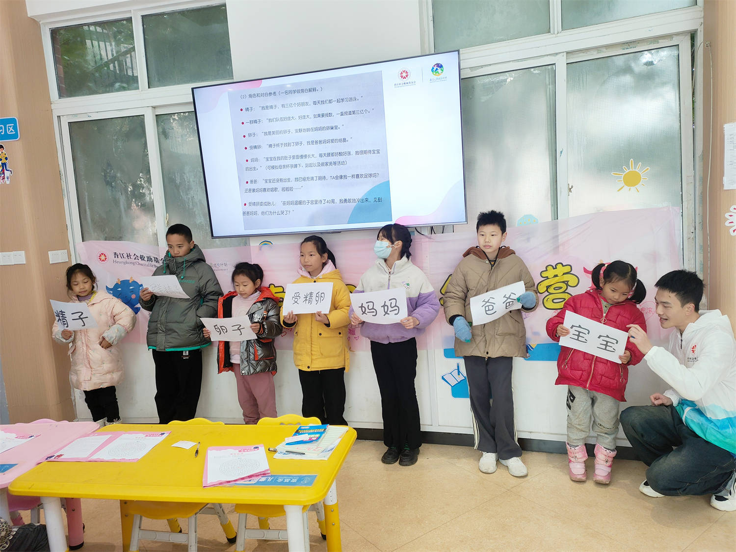 活动中,志愿者通过与儿童游戏互动、共读绘本、戏剧表演、护蛋行动、制作感恩贺卡等环节进行“感恩父母”主题课程学习,帮助儿童了解、感知生命孕育的过程,从而懂得珍惜生命,体验父母养育孩子的艰辛,学会感恩父母。