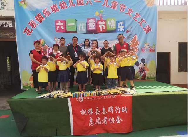 在“六一”儿童节来临之际,5月29日下午,在社会爱心人士物资支持下,桐梓县春晖行动志愿者协会组织志愿者,到桐梓县花秋镇乐境幼儿园开展走访慰问志愿服务活动,为37名小朋友带去了校服和学习用品水彩笔。