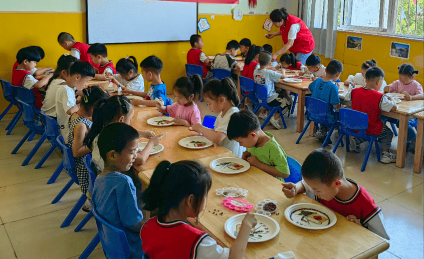 活动中,社工带来了大米、绿豆、红豆等仿真粮食,让孩子们更直观地认识粮食,并向他们讲解了一粒种子从播种、发芽、丰收,到成为“盘中餐”漫长且神奇的蜕变过程。并手把手和他们一起粘贴粮食,在大家的共同努力下,一幅幅颜色丰富、层次分明的粮食粘贴画就“诞生”了。
