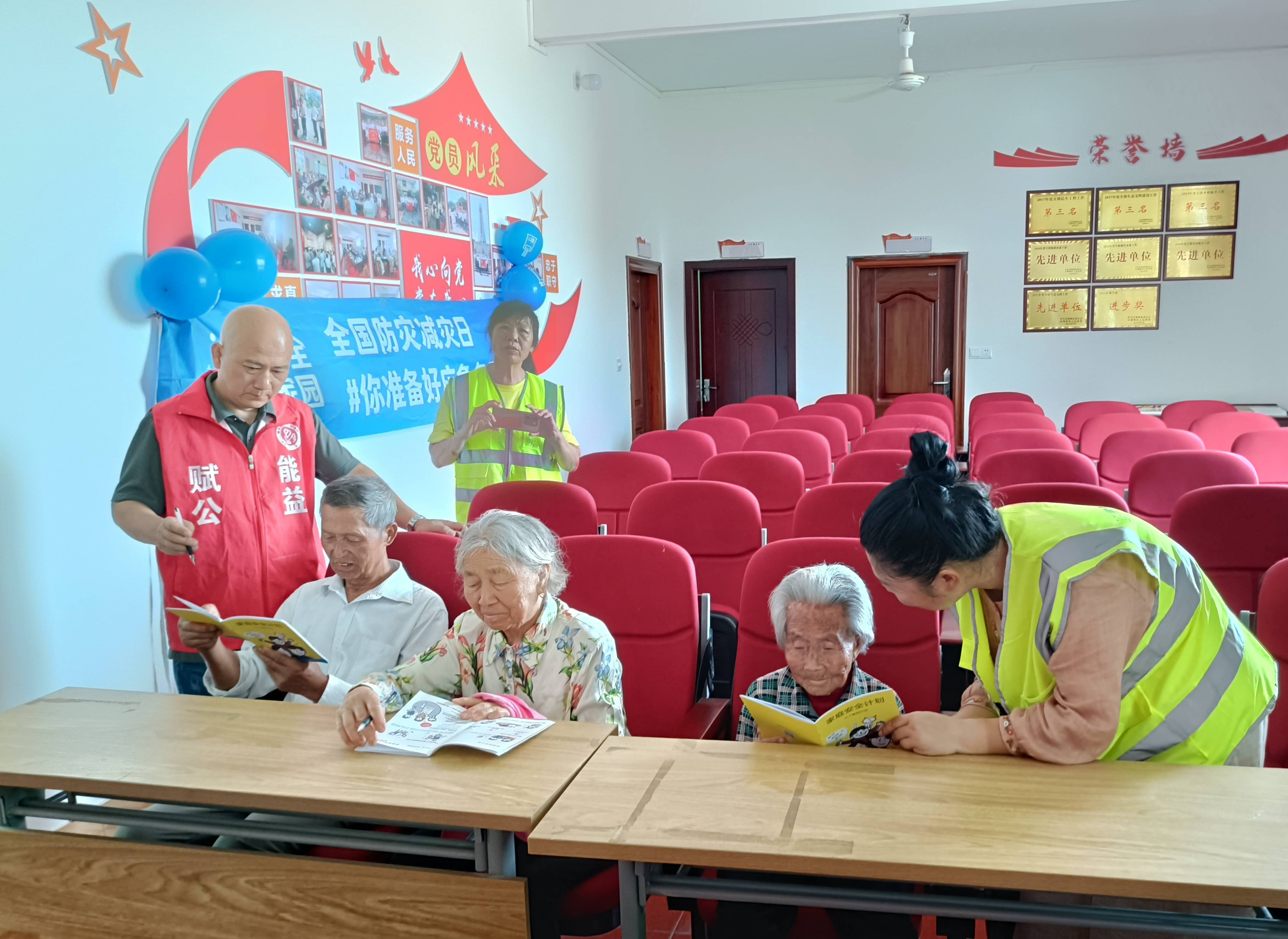 在阿里巴巴爱心网友和壹基金的支持下,6月24日,瑞金赋能公益志愿者杨美珍、胡俭、刘振平、朱民汉和伍群芳前往壹基金安全家园计划项目点沙洲坝镇下辖的七堡村,“人人来减灾”主题倡导活动,传播“人人讲安全、个个会应急——着力提升基层防灾避险能力”理念,提高村民防灾减灾意识,引导村民积极开展家庭备灾行动。