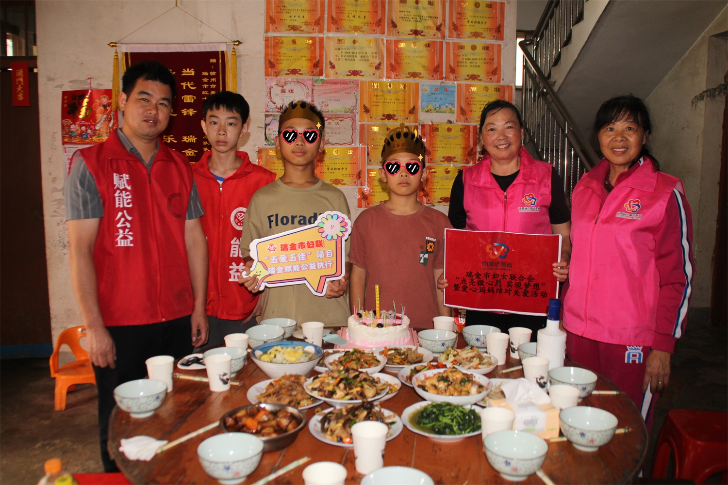 在瑞金市妇联资助和指导下,杨美珍、朱美萍、吴志锋、曾玖福、曾虹叡等瑞金市爱心妈妈和瑞金赋能公益志愿者前往象湖镇岗背村,为困境儿童小朝策划了一场特别而又温暖的生日会,送上爱心图书、护眼台灯、运动服、油米等爱心物资,共同度过一段难忘的时光,带去社会的关怀和温暖。