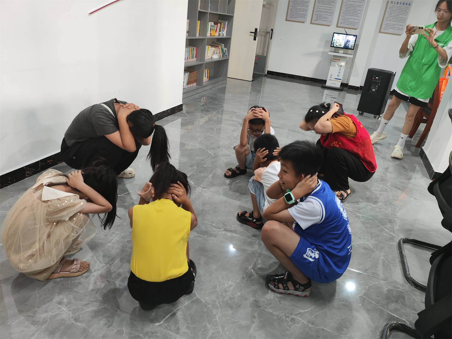 除此之外,还志愿者还重点讲解了一下地震这个自然灾害,看了相关的地震数据,了解震级的区分,地震的危害,还有避震原则和要点,以及不同场所地震的应对方式。为了加深小朋友们的防震意识和提高小朋友们自救互救能力,志愿者还进行了防震演练和逃生疏散演练活动,更好地防患于未然。在宣讲活动的最后,还组织我们的小朋友们边玩边唱防自然灾害小口诀,就像歌曲一样朗朗上口,通过寓教于乐的方式让小朋友们受益匪浅。
