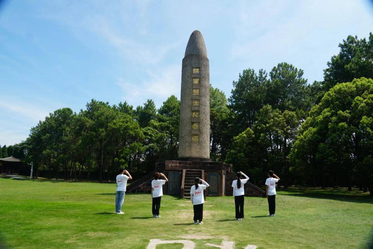 图为实践队员向红军烈士纪念塔敬礼。