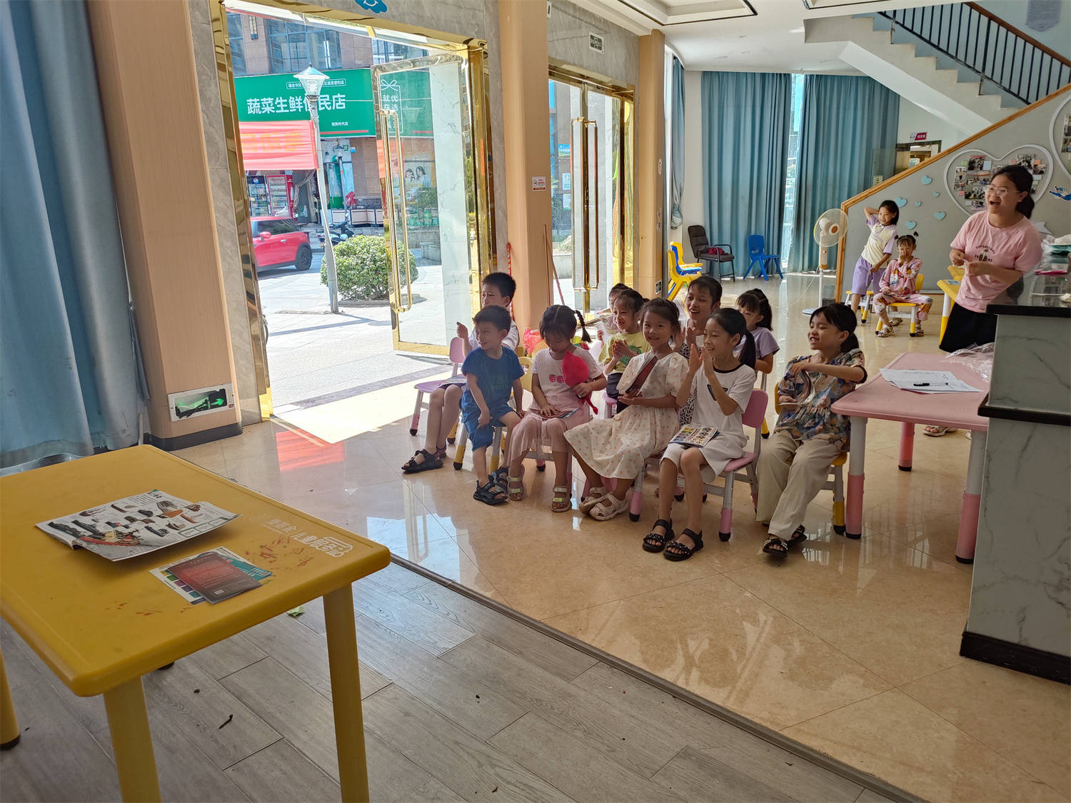 最后,三位小朋友还表演了烫伤处理的情景剧,其他孩子们则作为观众,三位小演员表演有声有色、惟妙惟肖,赢得了孩子们热烈的掌声。