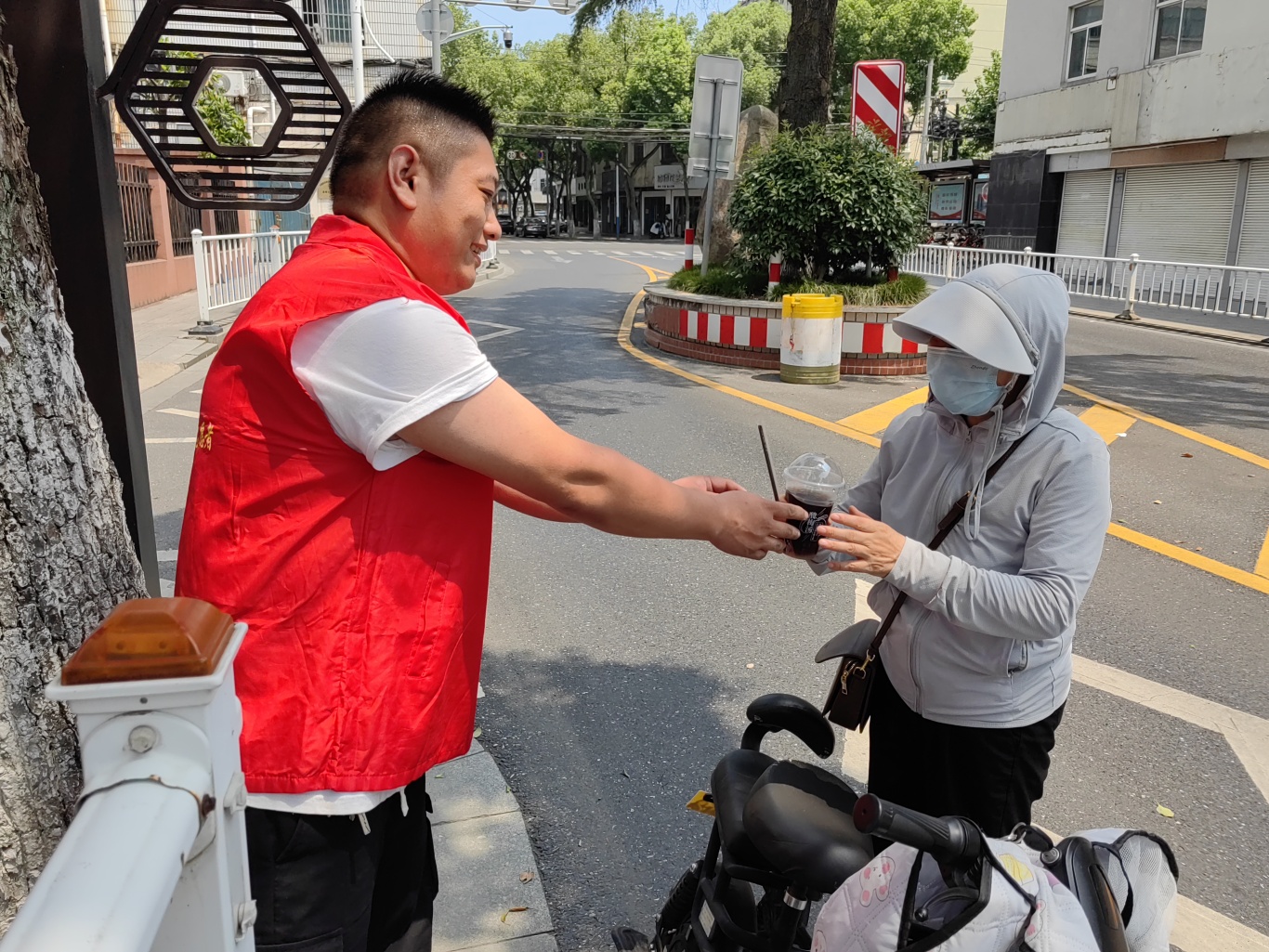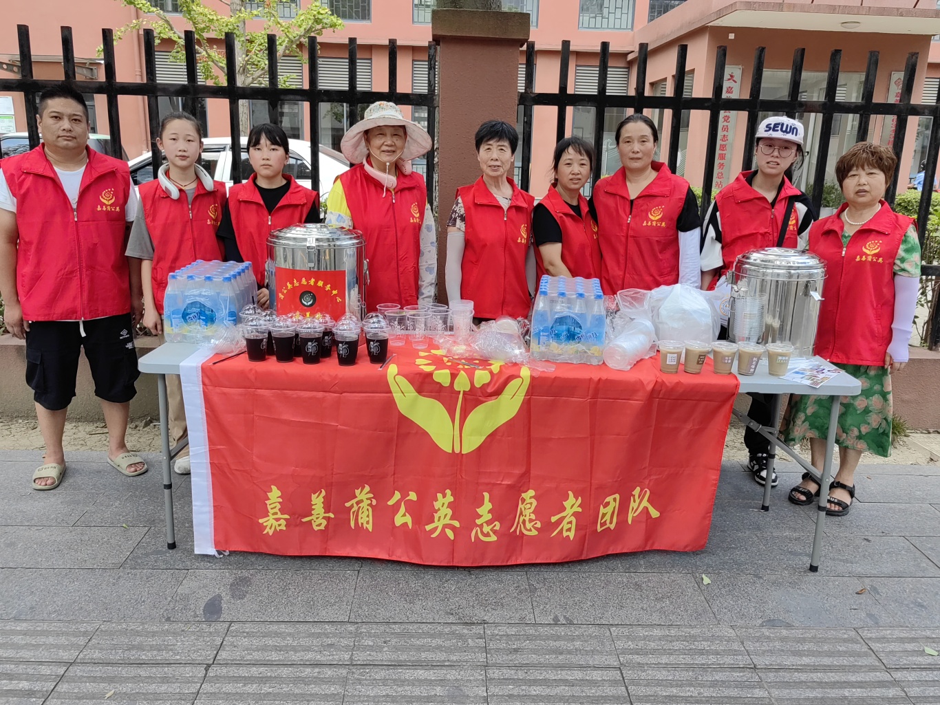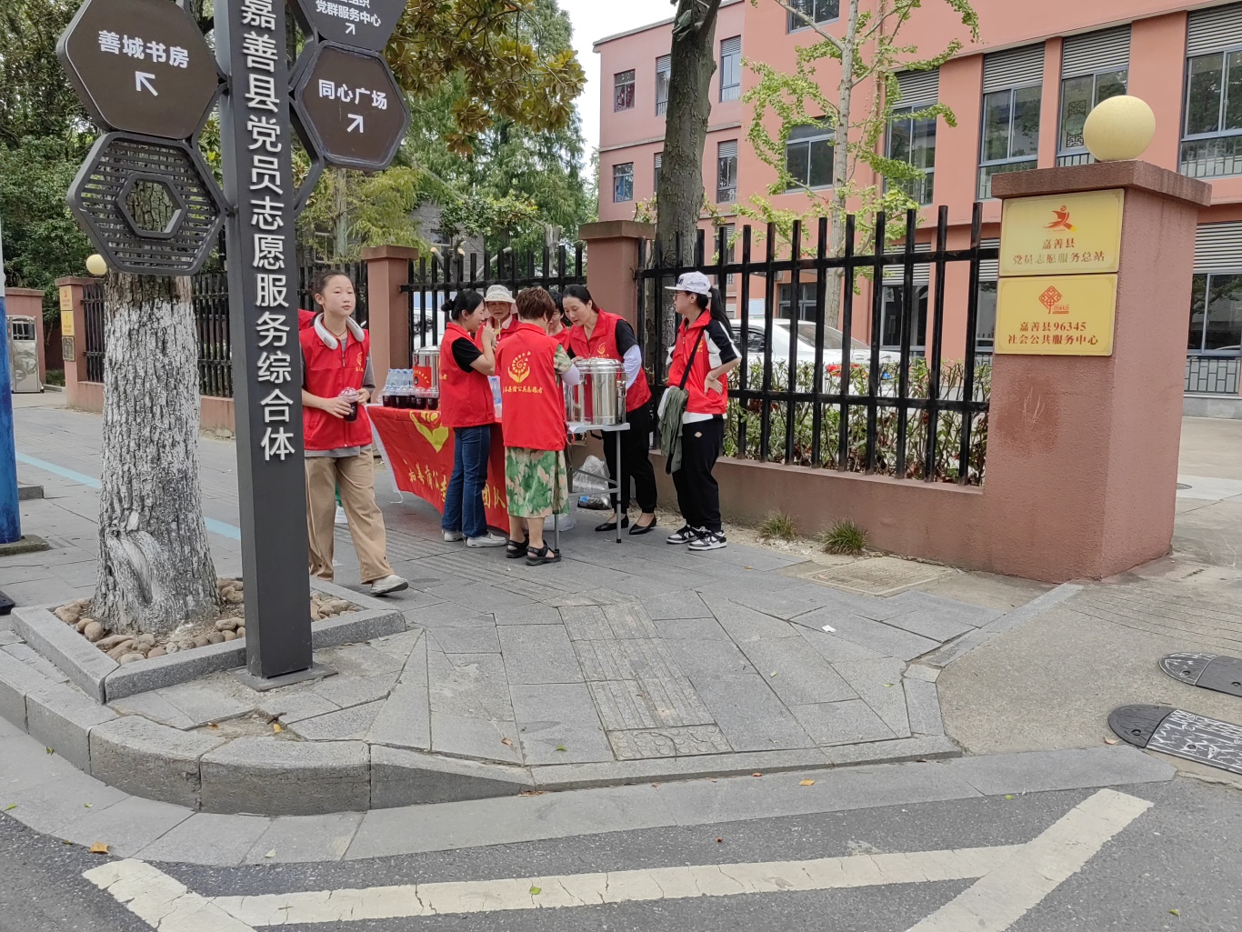 此次活动选择在嘉善县社会组织发展培育中心门口举行。这里位置显眼,交通便利,能够让更多的户外工作人员方便地接收到这份清凉的关怀。周围环境优美,绿树成荫,为活动营造了一个舒适的氛围。