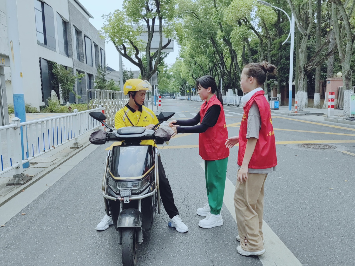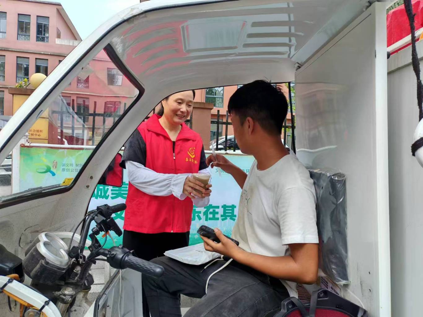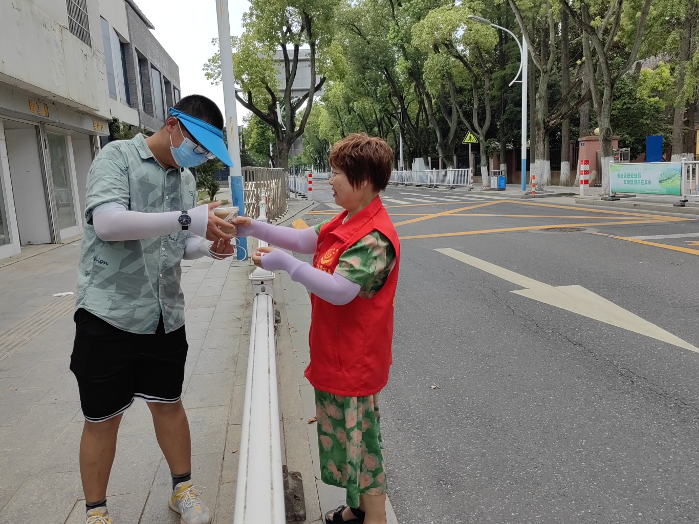 此次活动选择在嘉善县社会组织发展培育中心门口举行。这里位置显眼,交通便利,能够让更多的户外工作人员方便地接收到这份清凉的关怀。周围环境优美,绿树成荫,为活动营造了一个舒适的氛围。