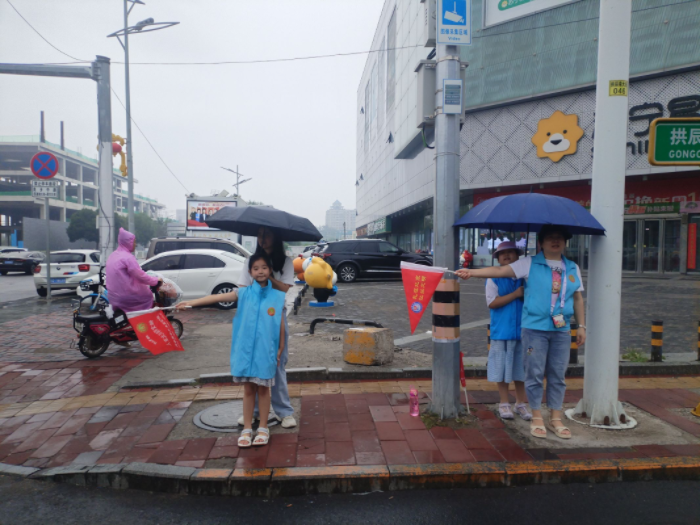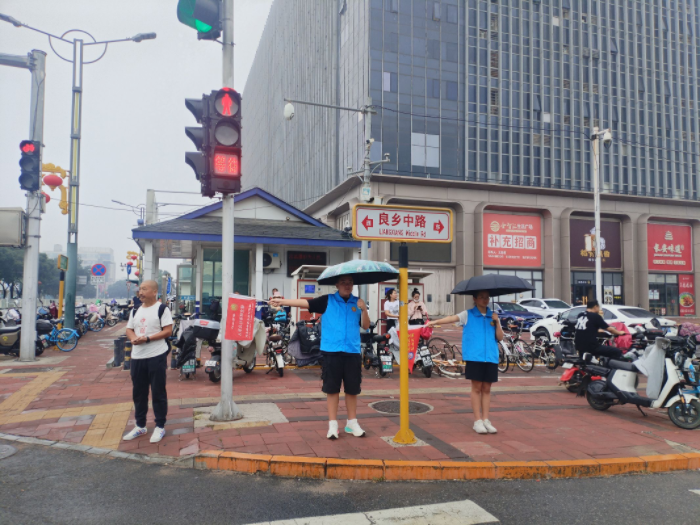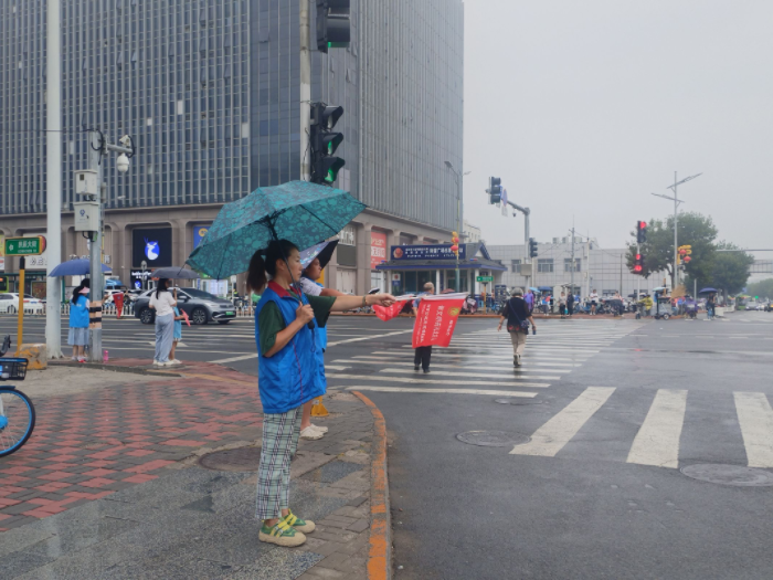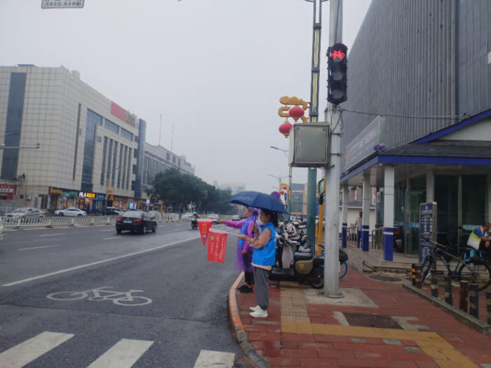 活动中,志愿者们顶着小雨,用实际行动践行“奉献、友爱、互助、进步”的志愿者精神。志愿者们身穿蓝色马甲,在红绿灯四个角落里开展文明交通劝导活动,他(她)们有的手持文明交通标语牌,有的向过往行人发放交通安全传单,还有的在执勤点位上,对非机动车骑乘人员未佩戴安全头盔、逆行行驶以及行人不走人行横道、不按照交通信号灯指示通行等不文明行为进行劝导,用实际行动带动更多的人自觉遵守交通规则。