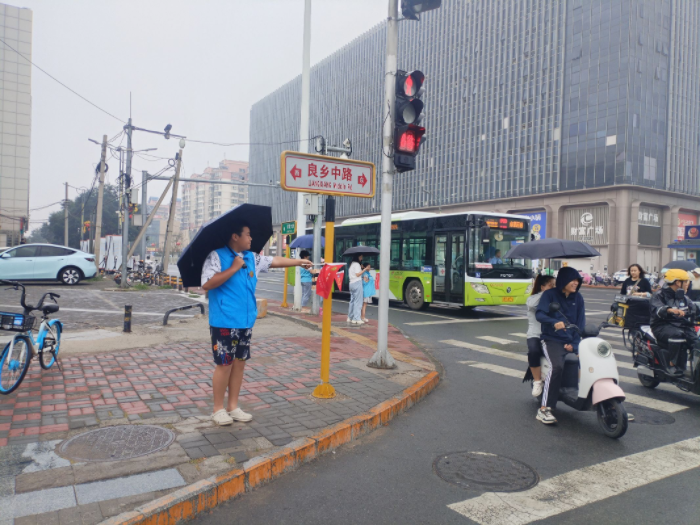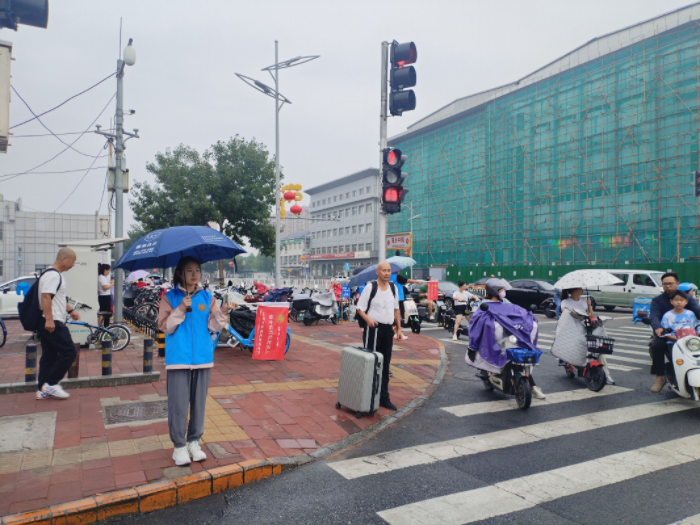 为持续推进文明交通劝导志愿服务活动,维护道路交通秩序,营造文明、和谐、礼让的交通出行氛围,8月31日上午,绿萝志愿服务队在良乡大角红绿灯处开展“文明交通 礼让斑马线”劝导志愿服务活动。
