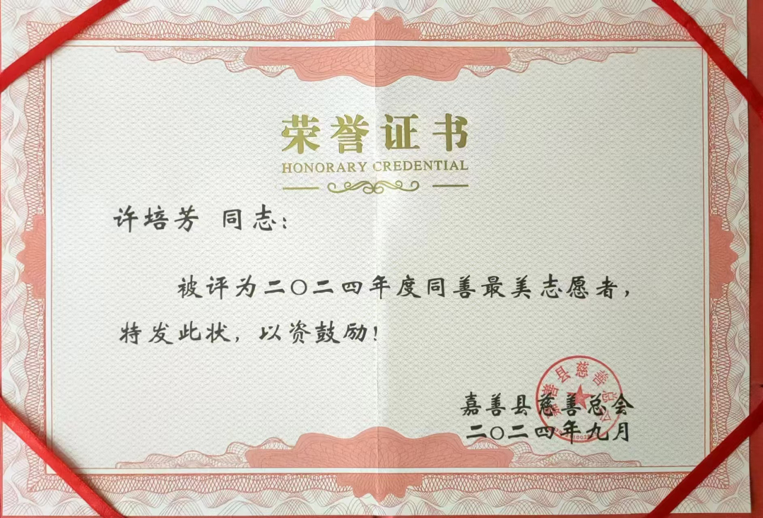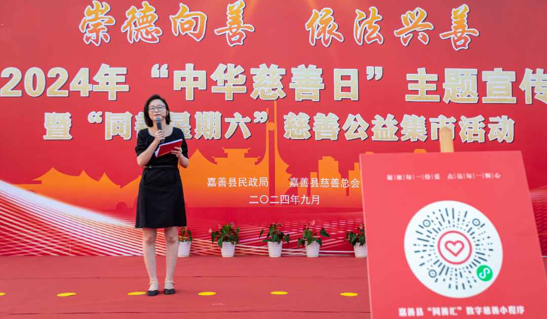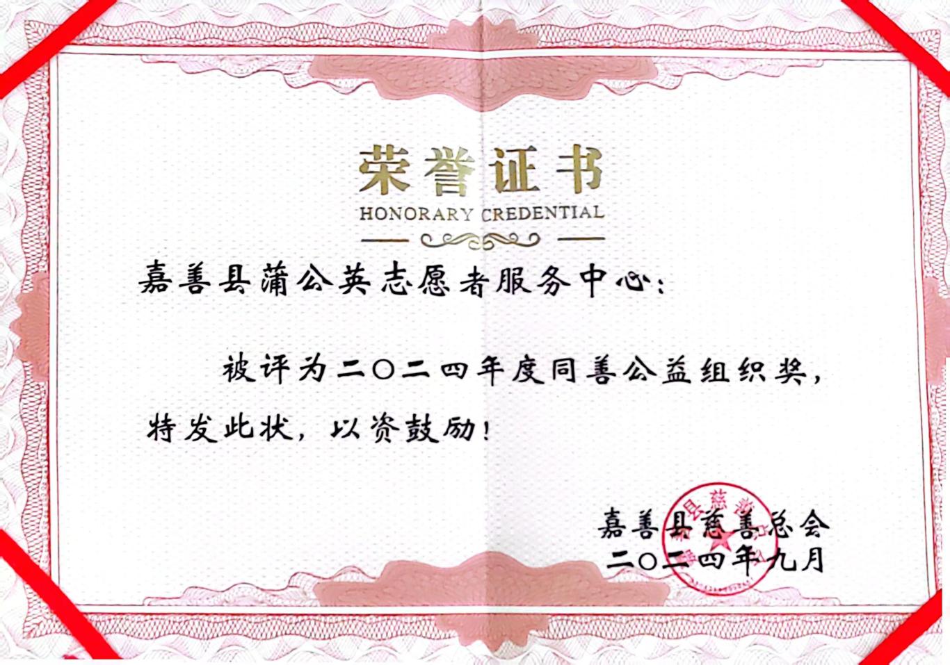 在此次义卖活动现场,嘉善县慈善总会还为2024年度同善爱心企业(商家)、同善最美志愿者、同善之星、同善公益组织进行了表彰。会上,嘉善县蒲公英志愿者服务中心获得同善公益组织奖、许培芳获得同善最美志愿者称号、嘉善晖文副食品店获得同善爱心企业(商家)称号。恭喜以上获得荣誉的爱心组织、商家及个人。希望获奖者再接再厉,为嘉善的慈善事业作出更大的贡献。同时,在团队带领下,希望大家应以获奖者为榜样,继续积极参与嘉善的慈善与公益,为嘉善的慈善事业发展作出自己的一份贡献!