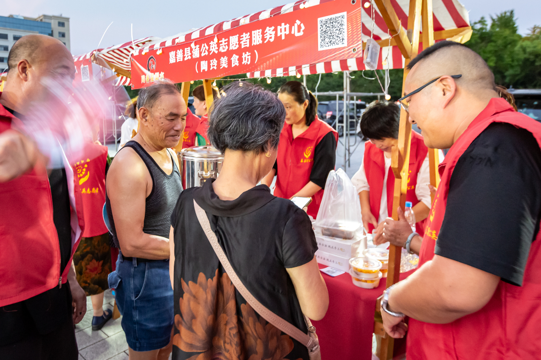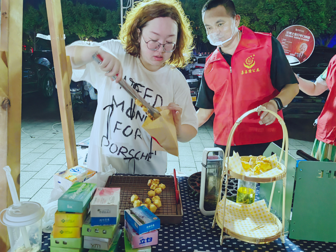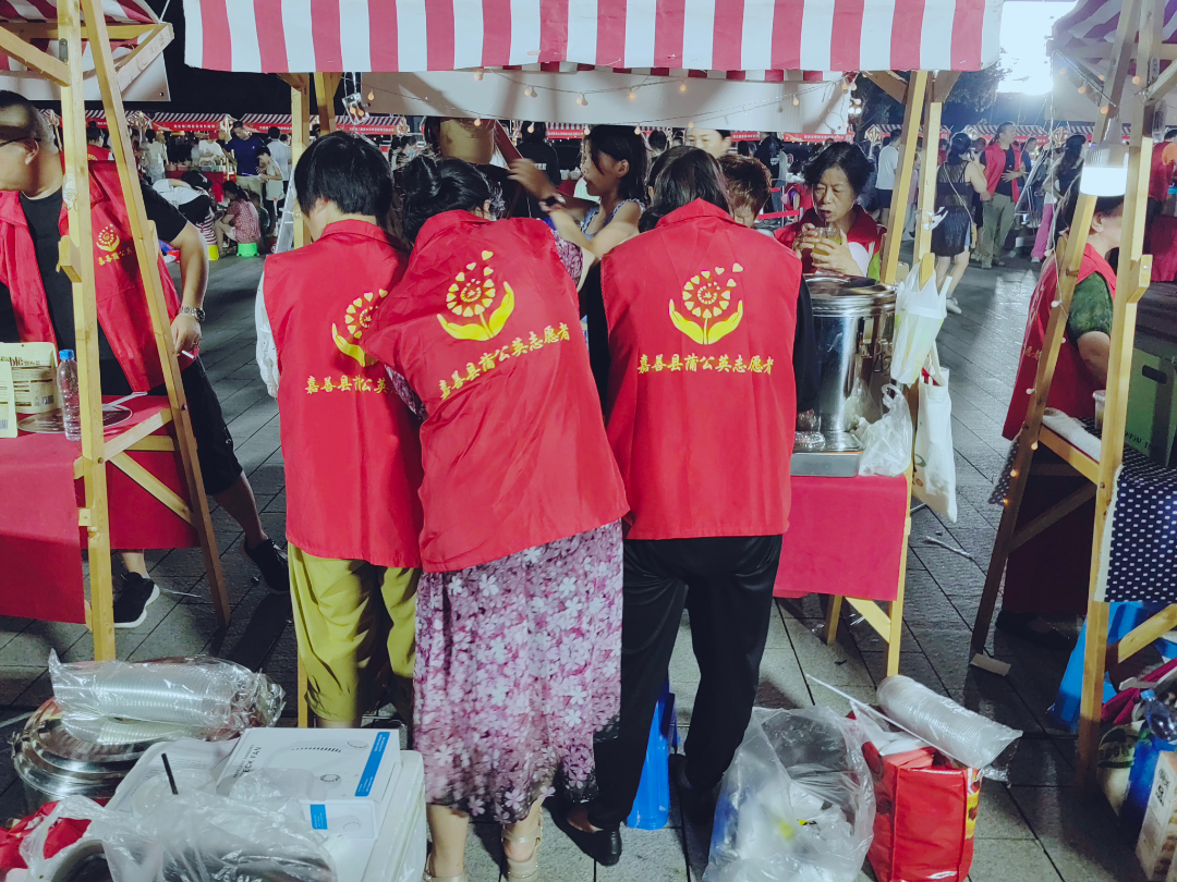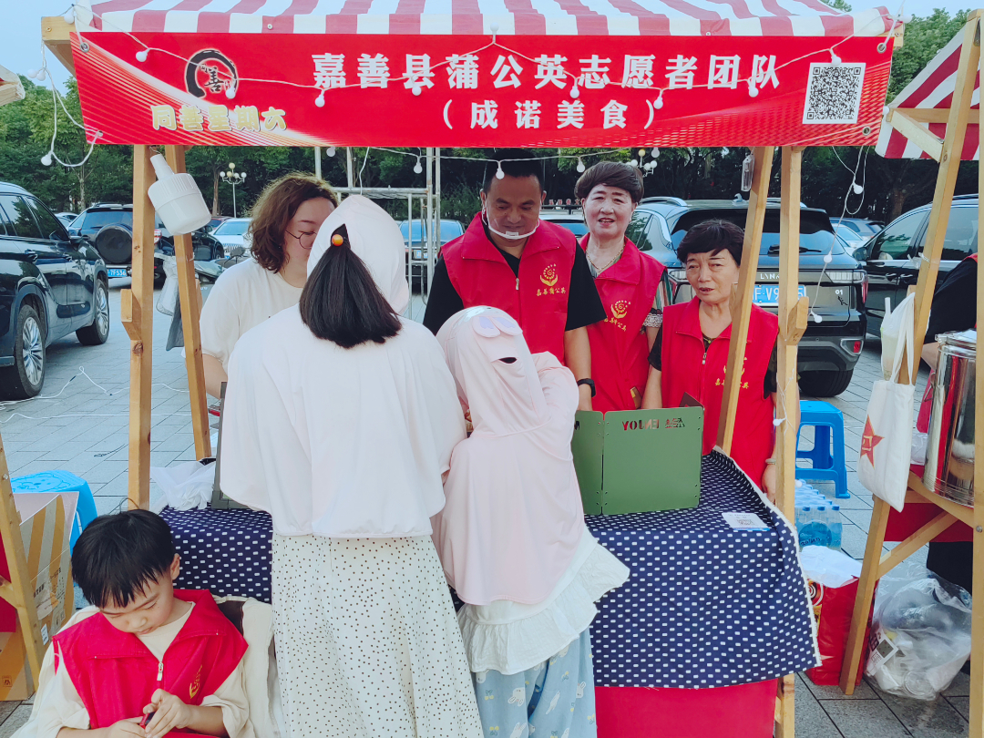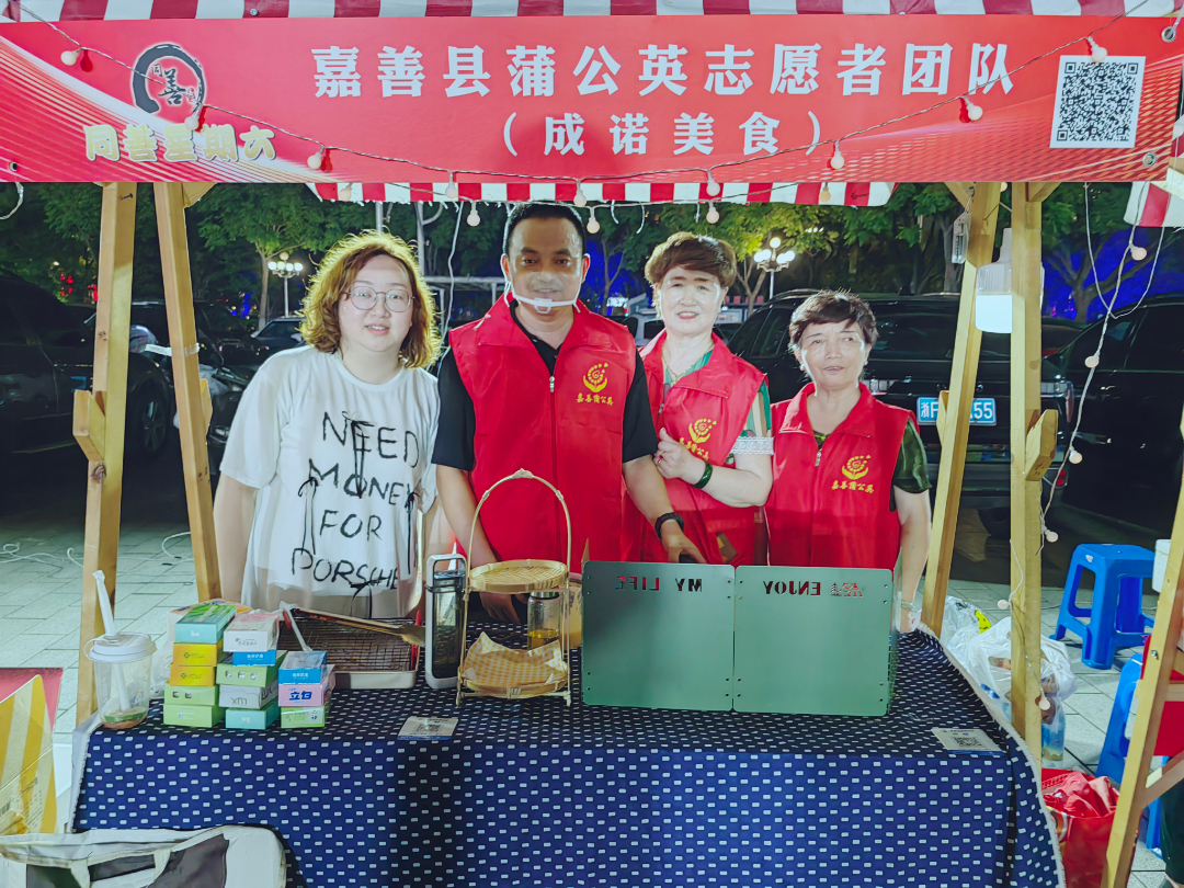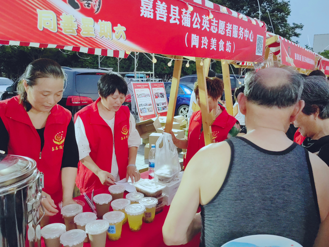 9月1日晚上,当第九个“9.5 中华慈善日”的脚步悄然临近之时,嘉善县慈善总会犹如一座温暖的灯塔,汇聚起社会各界的磅礴力量,在嘉善县市民广场盛大举行了以“崇德向善 依法兴善”为主题的同善星期六慈善义卖活动。嘉善县蒲公英志愿者服务中心在团队负责人的精心安排下,团队中的爱心商家和志愿者们如同一颗颗闪耀的星辰,积极投身于此次活动中,共同营造出了人人皆可参与慈善的浓厚社会氛围,大力弘扬着那熠熠生辉的慈善爱心理念。