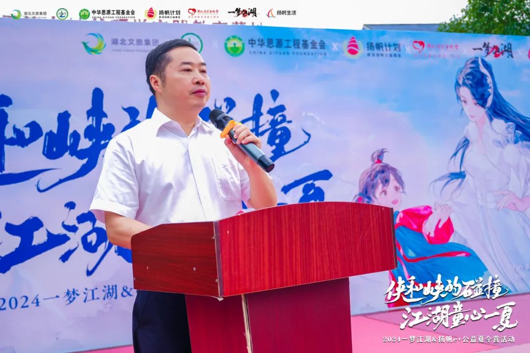 最后,本次开营仪式在所有参会人员的共同期待下,由民建湖北省委企业委员会副主任、湖北慈善思源爱心基金主任刘刚剑代表民建湖北省委宣布“2024一梦江湖&扬帆e+公益夏令营”正式开营。