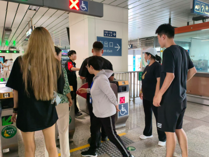 活动现场,在地铁站厅无处不见志愿者们服务的身影,有的志愿者在地铁安检处,引导乘客有序通过闸机、提醒乘客按规定进行安检。有的志愿者们站在扶梯两旁,彬彬有礼的提示乘客注意安全,乘坐扶梯,确保安全出行万无一失。乘客们向他们投来感谢的目光。