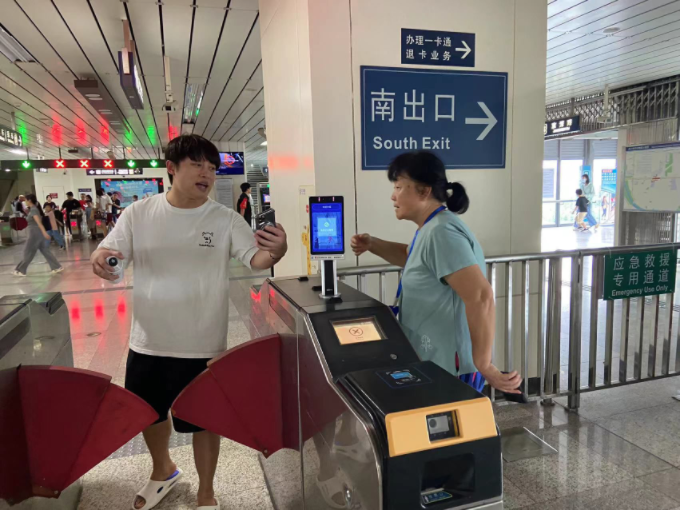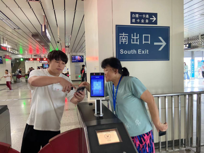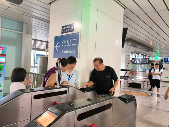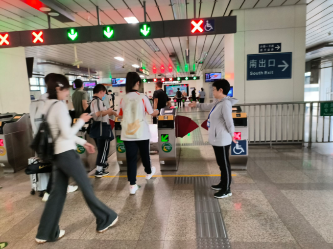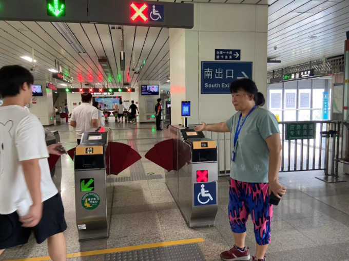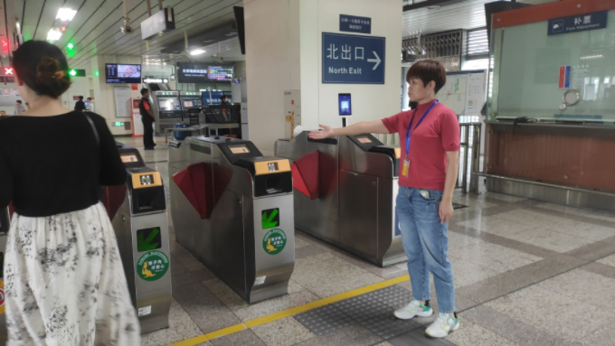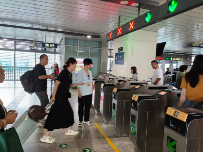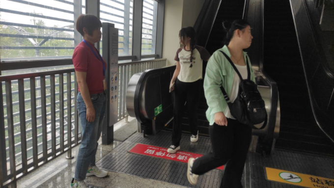 他(她)们有的在自助购票机旁引导乘客自助购票,有的在站厅内回答乘客的问题,有的主动捡拾乘客们不小心掉在地上的垃圾。