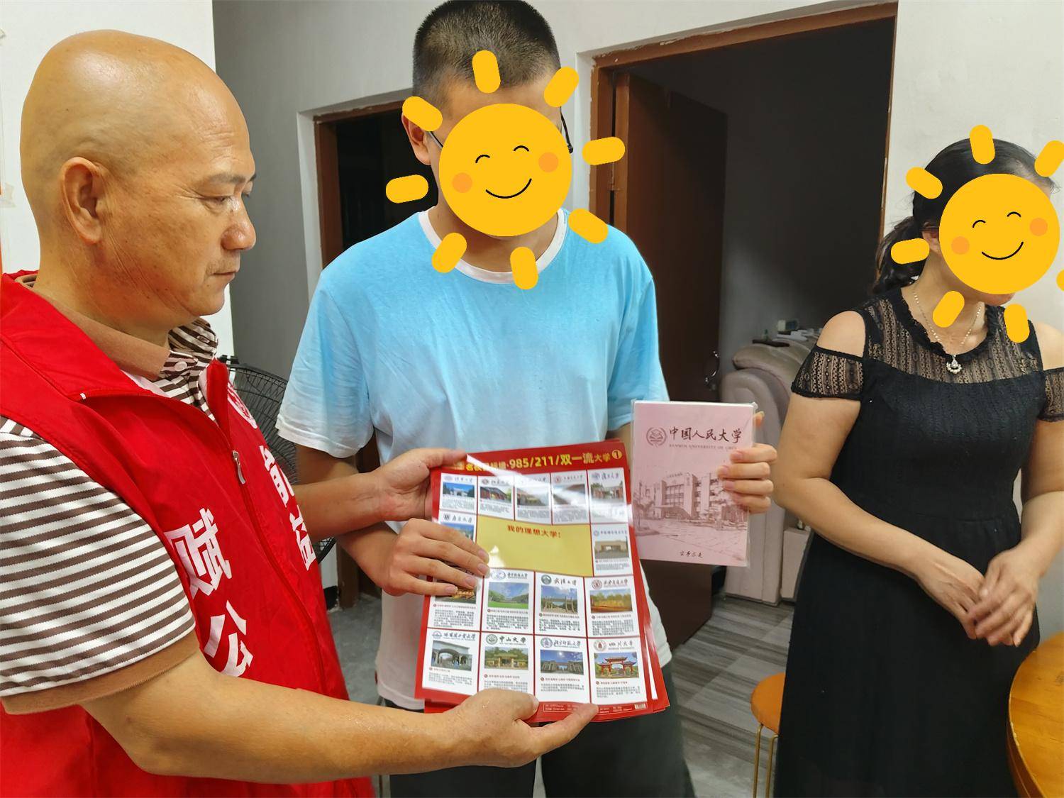 期间,志愿者了解小宝上半年来的家庭生活、学习等情况,送去名校笔记本、还有大学海报,引导小宝立志上大学、上名校、上重点大学,从现在开始努力,一步一个脚印,不断用大学目标引导前行之路,校正人生航程,争取有一个好的未来。