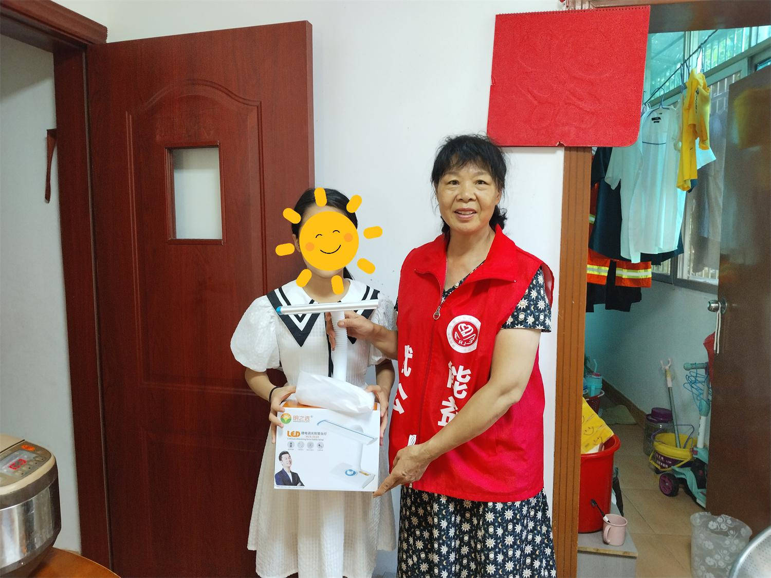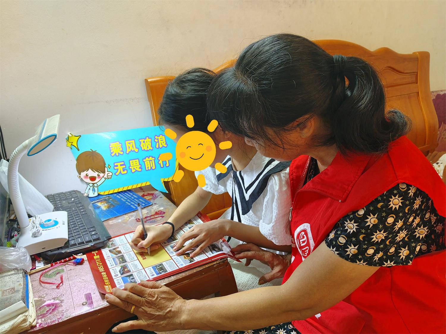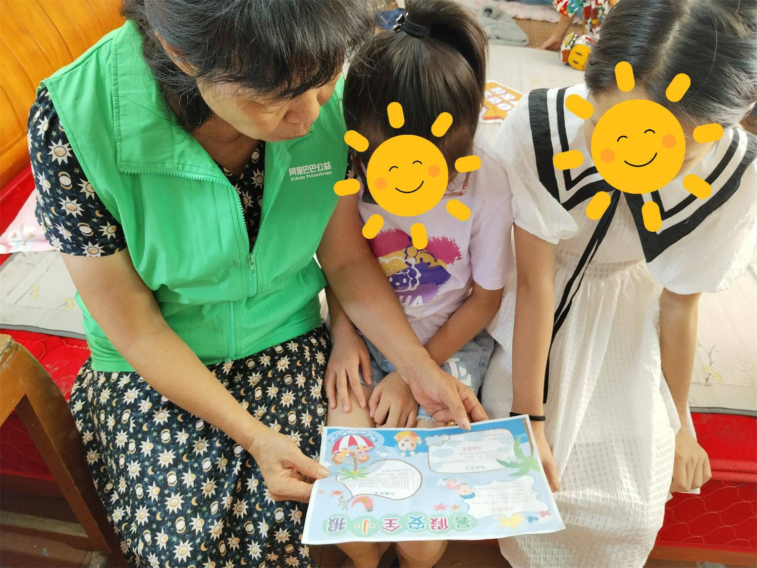 吃完饭,爱心妈妈给佳佳送上爱心图书、学习礼包、护眼台灯、运动套装、油、米等爱心物资,还针对暑期情况对佳佳三姐弟开展"暑期安全同行"教育,一起学习了防溺水、用电安全、交通安全等知识,告诫姐弟三人千万不要下河游泳,不要到河边嬉戏,要准备交通规则,让安全与爱同行。