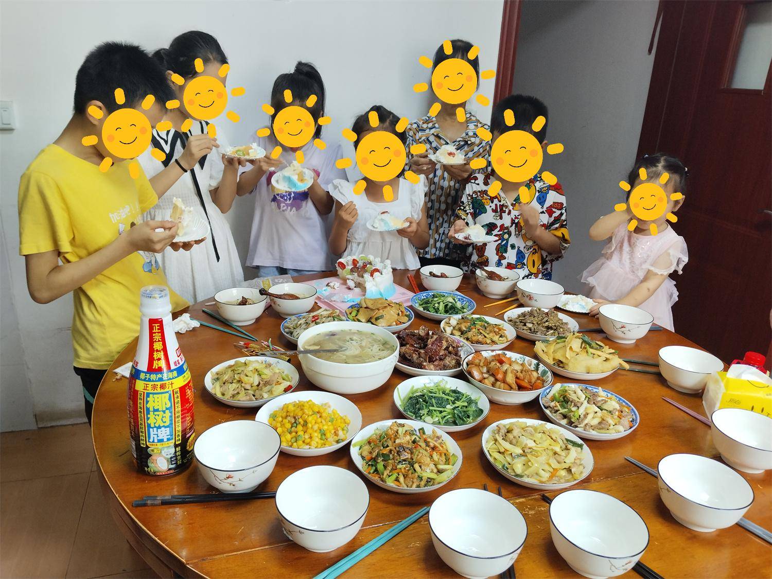 佳佳跟弟弟妹妹一起欢快的吃着蛋糕,在愉快的生日晚会中度过了难忘的时光,更感受到了来社会与爱心妈妈的关怀和温暖。
