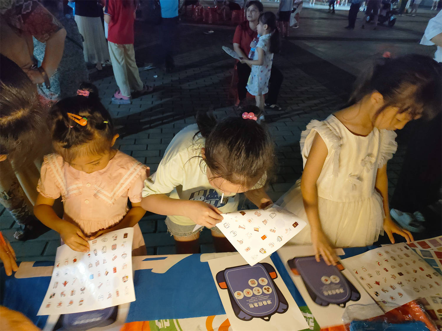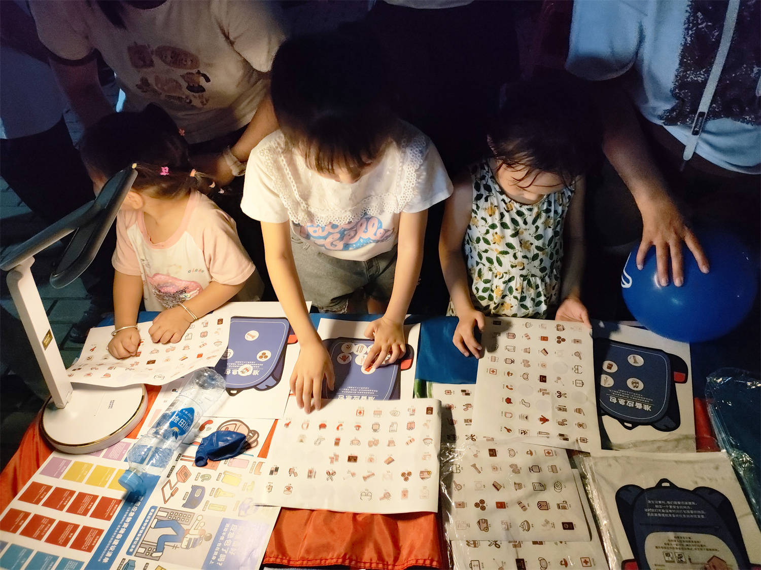 一群孩子看到亮着台灯的桌子上铺着的横幅上写着“你准备好应急包了吗?”的字样,纷纷走过来问,“这是什么呀。”志愿者们向孩子及家长们解释道,“应急包是什么呢?应急包就是在遇到突发情况,比如地震、火灾、洪水等灾难的时候,能帮助我们应急求生的工具包。”小朋友们点点头认真的听着志愿者们的讲解。